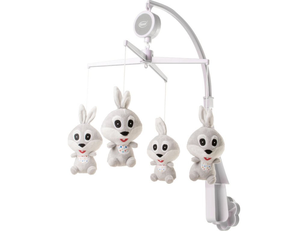 4Baby Plyšový kolotoč nad postýlku Rabbit - šedo/bílý