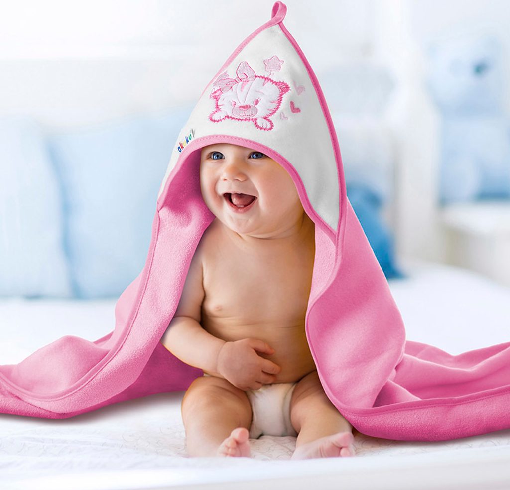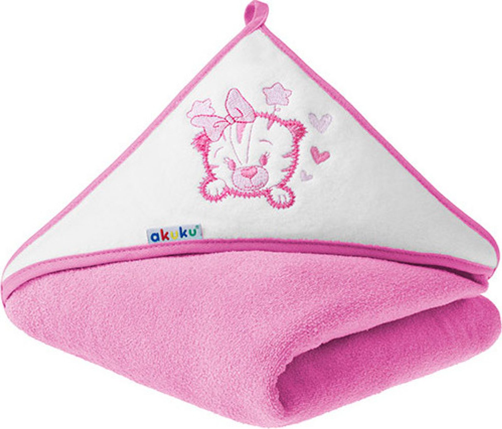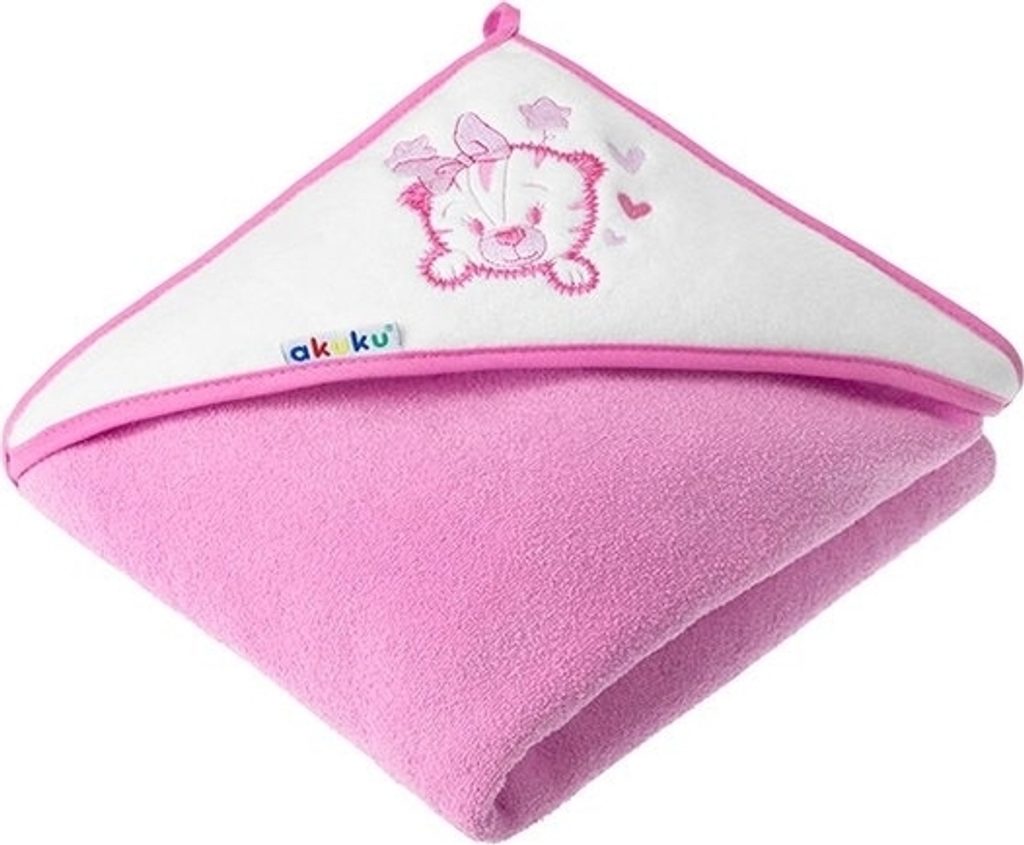 Dětská osuška Akuku s obrázkem a kapucí. Osuška je vyrobena z příjemného a měkkého materiálu. Vnitřní strana osušky je bavlněná, vnější fleecová. Rozměry: cca 100x100 cm. Složení: 100% bavlna.
