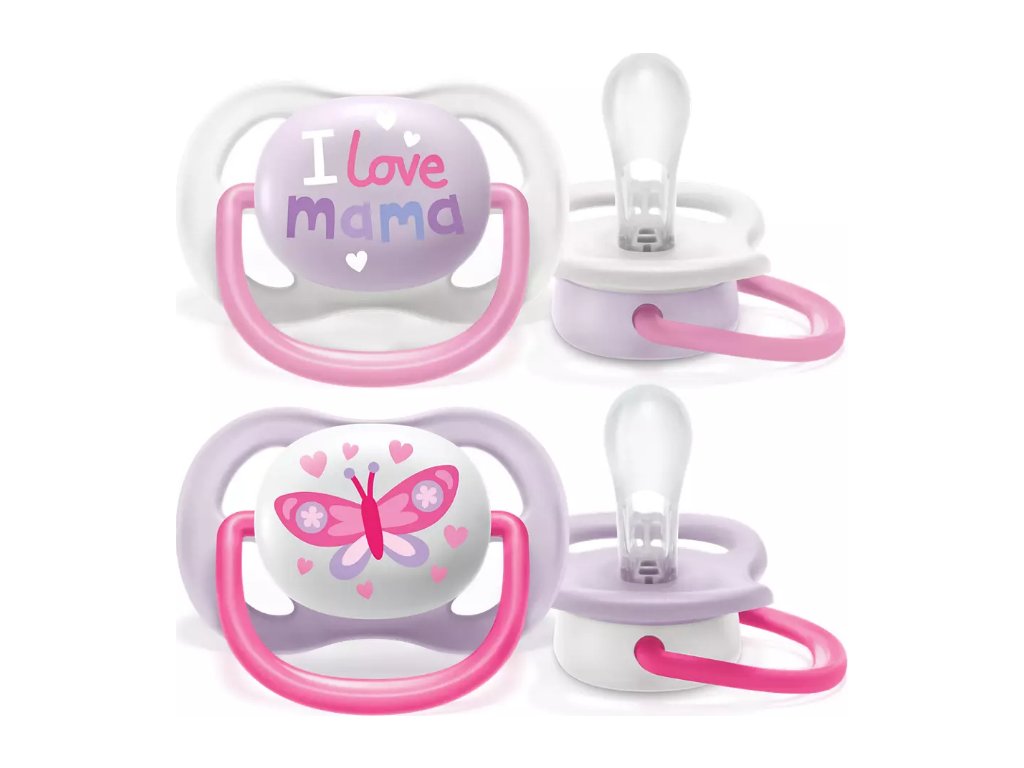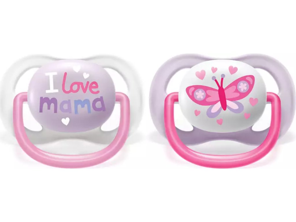 AVENT AVENT Dudlík Ultra Air Happy I Love mama, 0-6m - Motýlek, lila