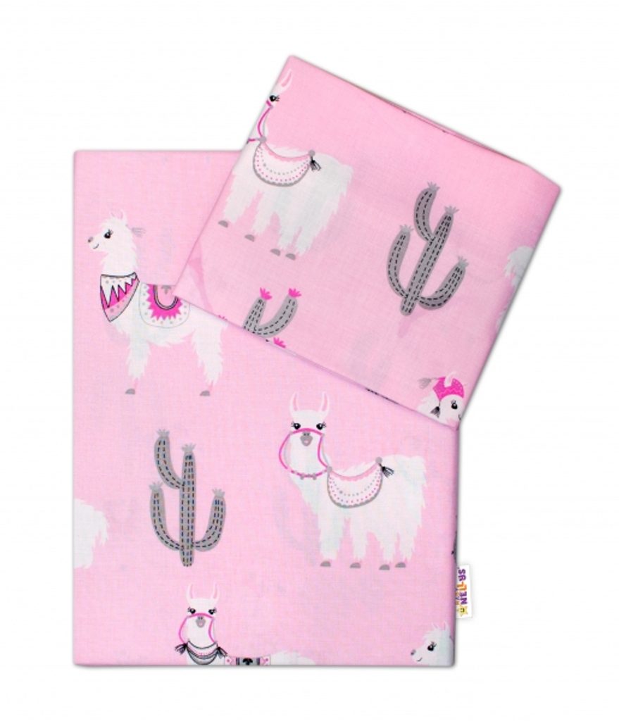 Baby Nellys Baby Nellys 2-dílné bavlněné povlečení Lama - růžové