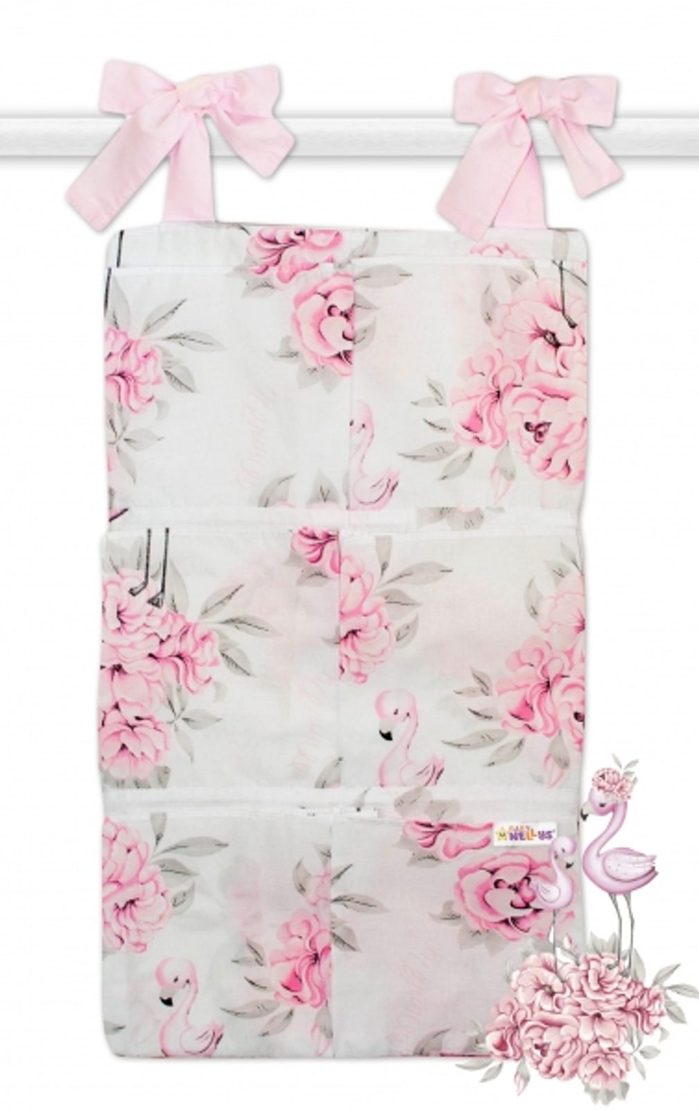 Baby Nellys Bavlněný kapsář na postýlku Baby Nellys 6 kapes, Plameňák - růžový