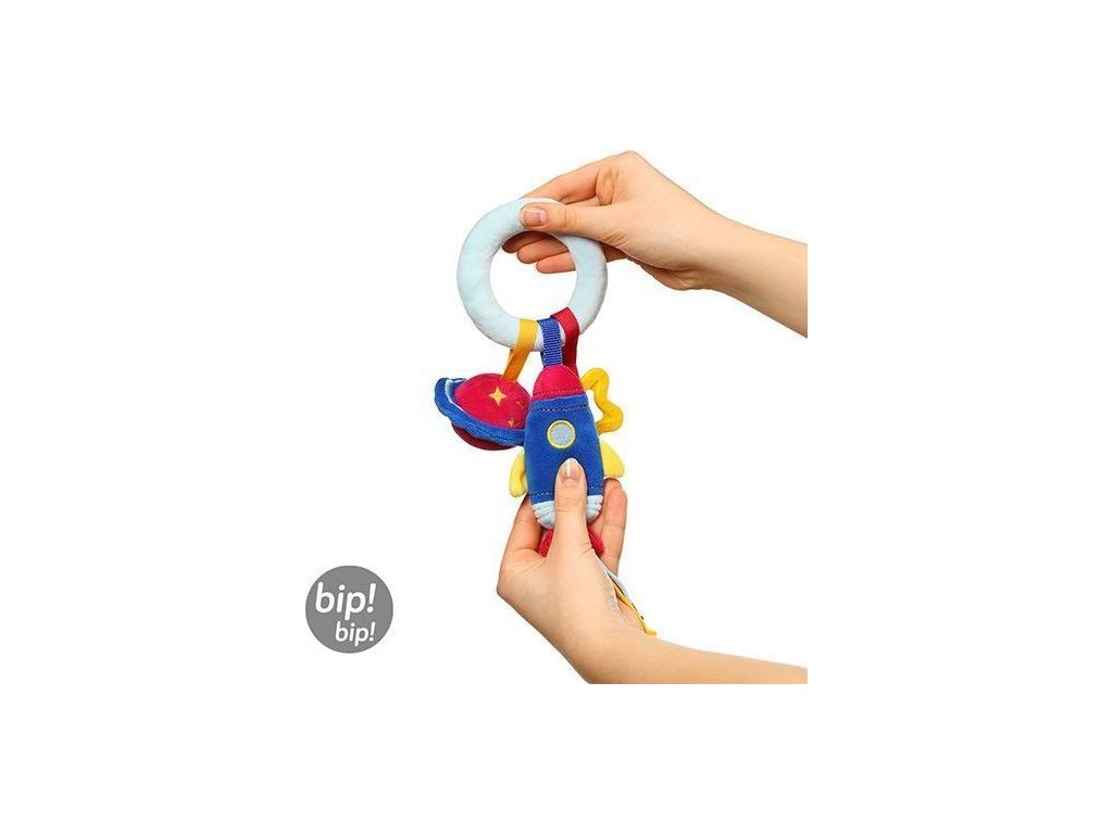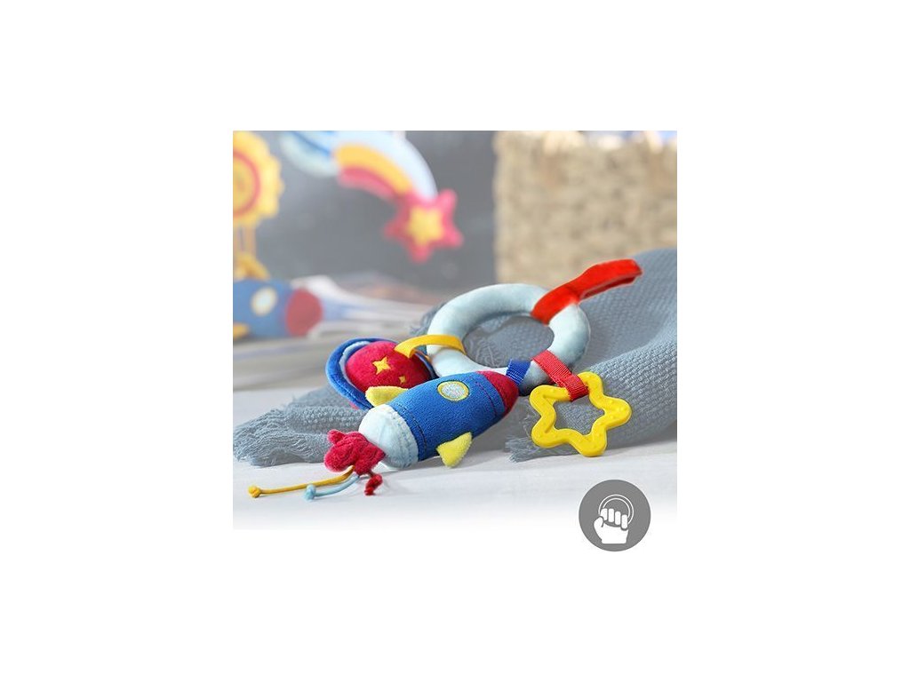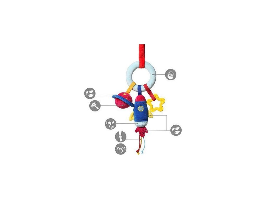 Prvky rakety zakončené poutky stimulují hmat dítěte.