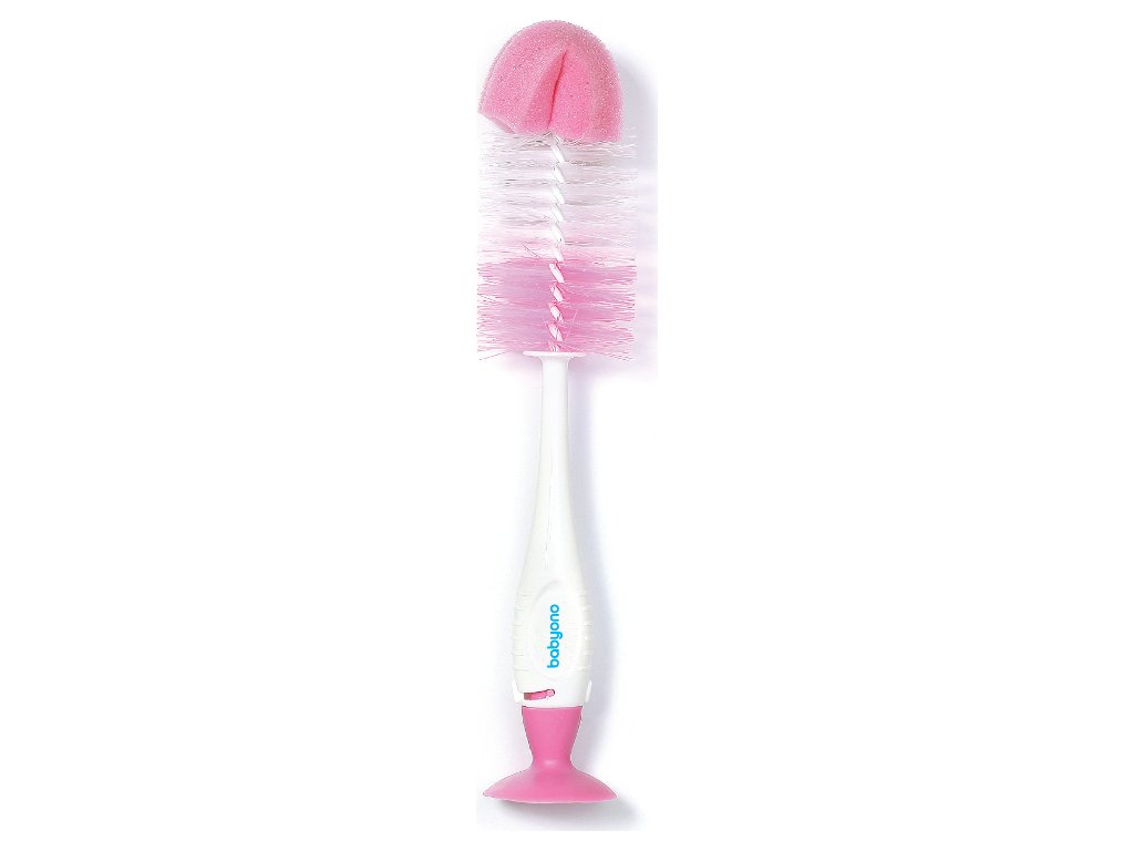 BabyOno BabyOno Kartáč k mytí lahviček s přísavkou - růžový