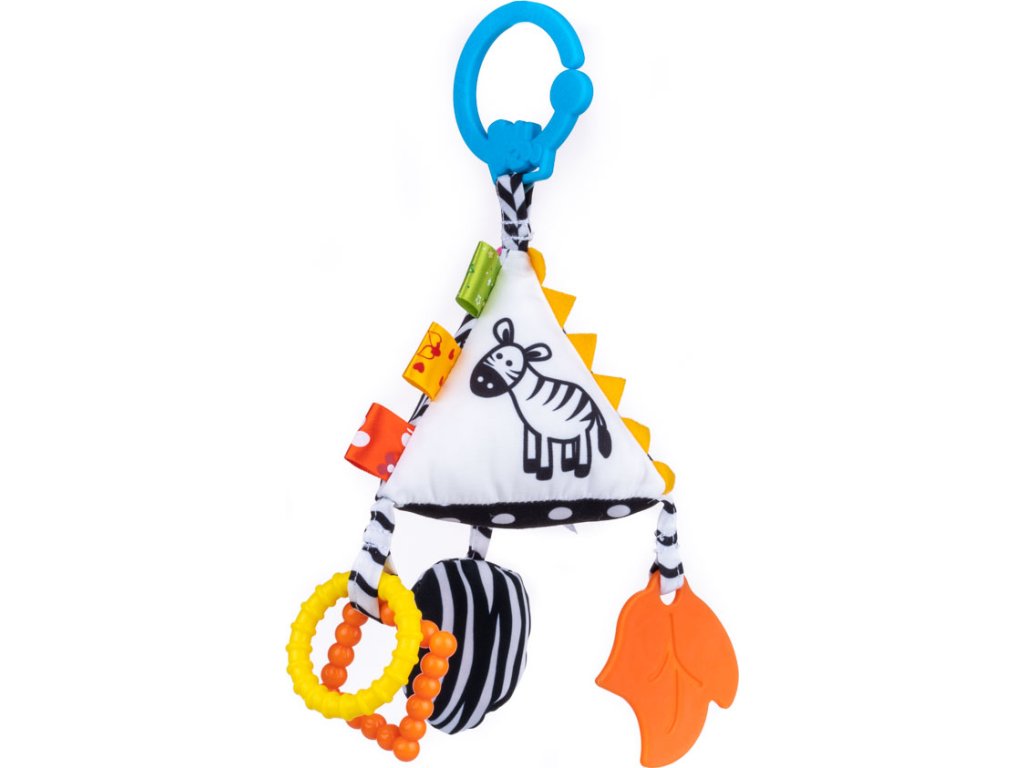Hračku zdobí barevná kousátka a praktická přezka, která vám ji umožní připevnit kamkoli.Hračka určená pro děti od narození.