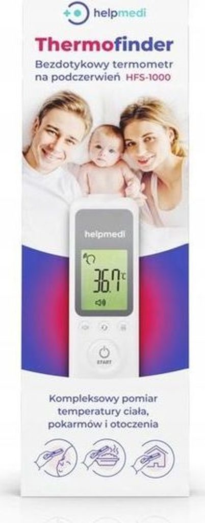 Bezkontaktní infračervený teploměr Thermofinder značky Helpmedi zajistí hygienické a okamžité měření teploty nejen těla. Můžete jej také použít ke kontrole teploty vody do koupele nebo kontroly dětské výživy.