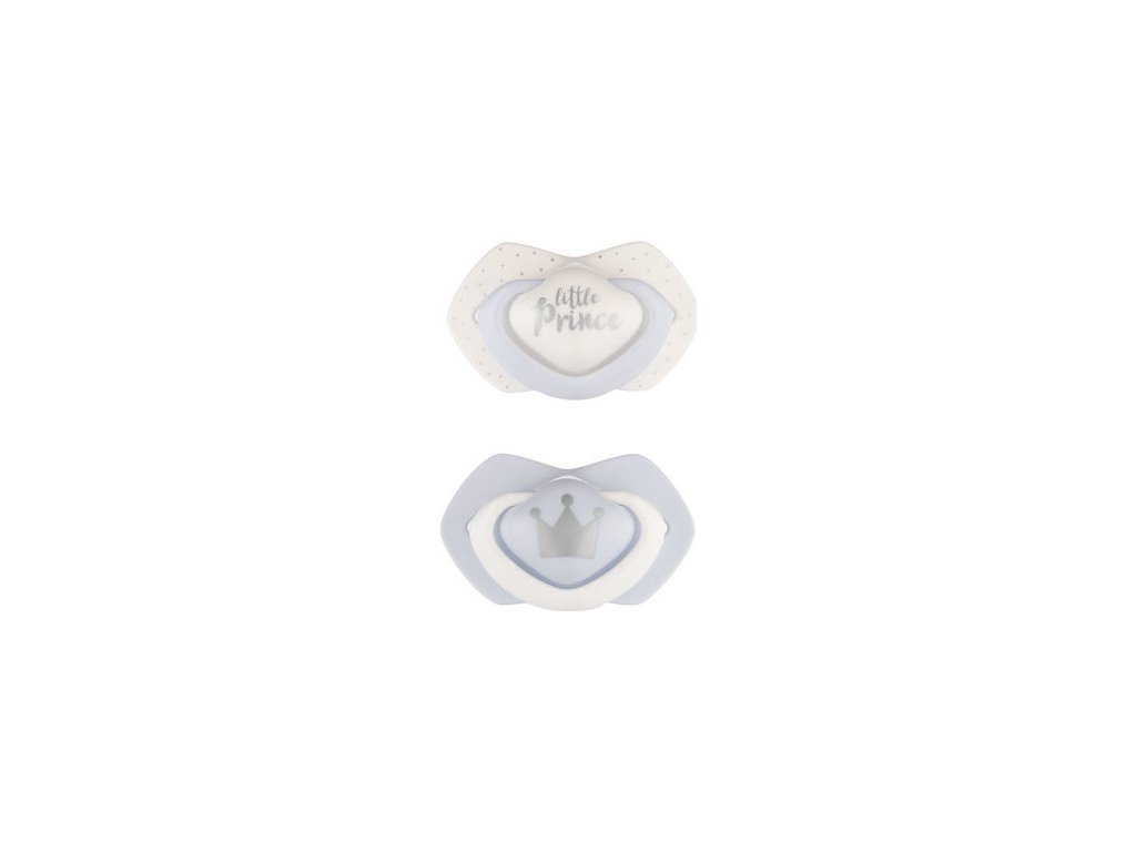 Canpol Babies Canpol Babies 2 ks symetrických silikonových dudlíků, 0-6m, Little prince, modré
