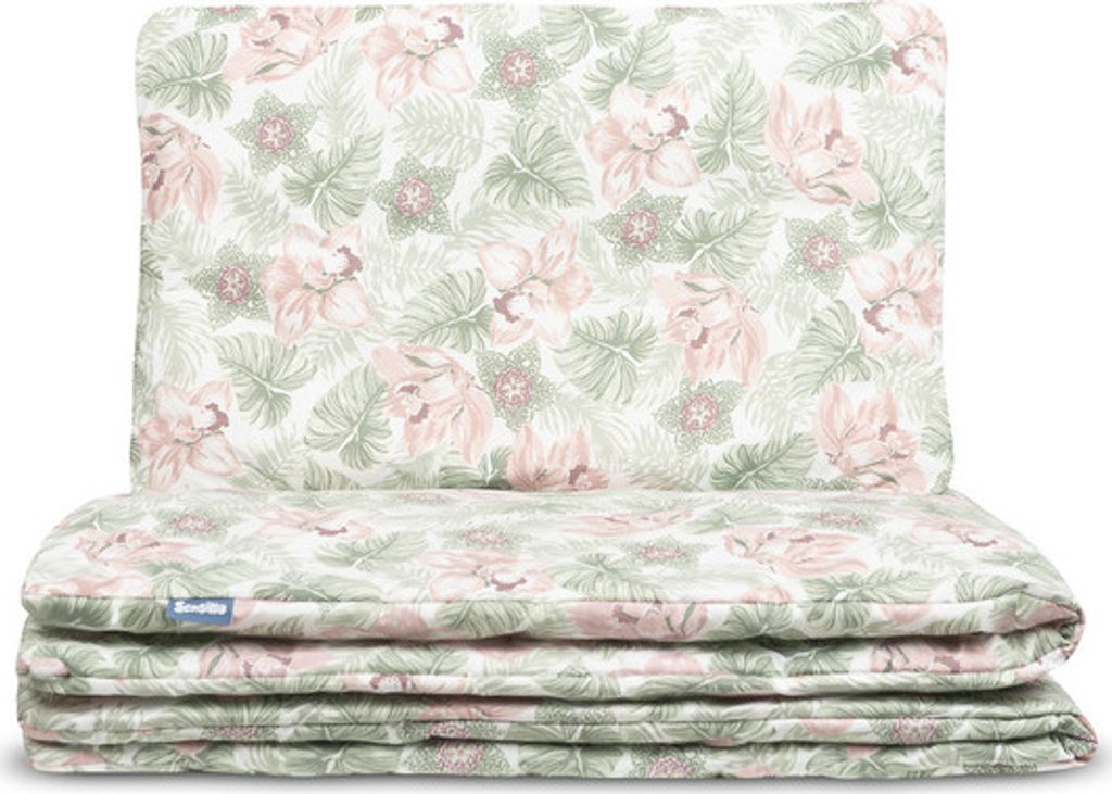 Celoroční souprava je sada polštáře a přikrývky s všitou výplní 260g/m2, která zajišťuje teplo a správnou cirkulaci vzduchu po celý rok. Souprava je vyrobena z kvalitní jemné 100% bavlny s antialergickou výplní. Rohy přikrývky a polštáře jsou zaoblené.