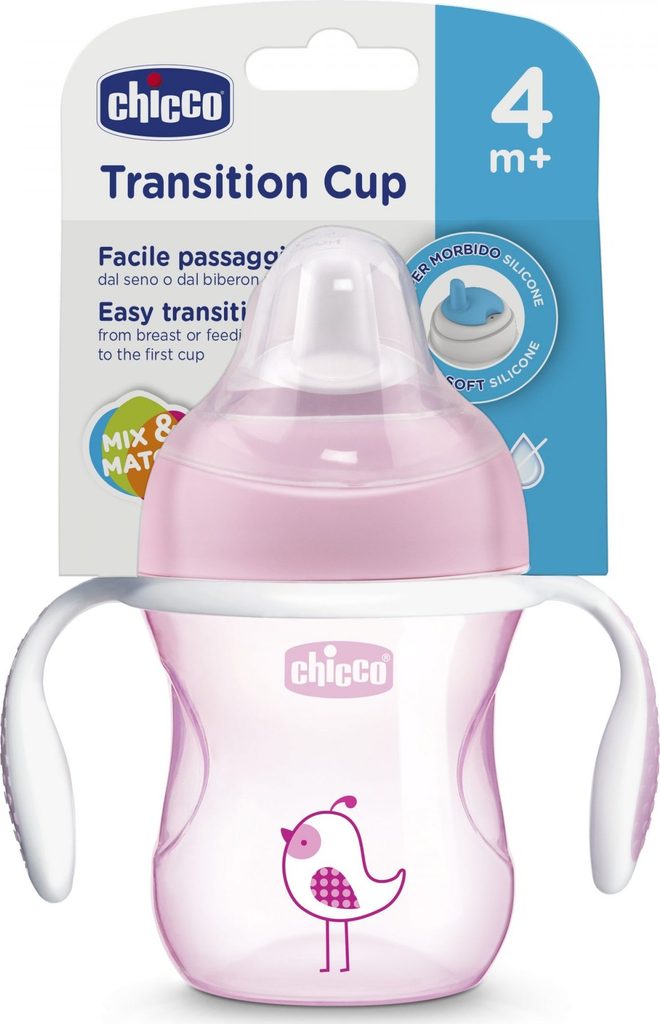 Chicco hrneček učíme se s držadly 200 ml růžová ptáček