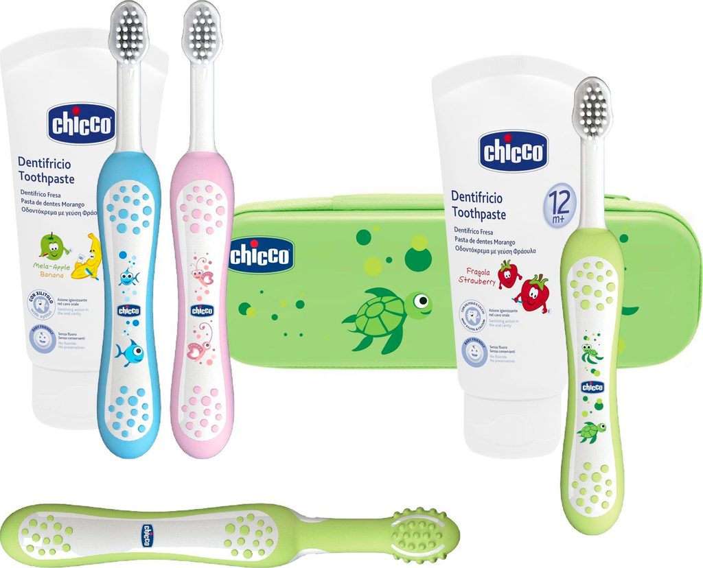 Chicco Zubní kartáček s malou zaoblenou hlavou perfektně padne na dětská ústa a zkosené, extra měkké štětiny jemně čistí dětské zoubky a dásně. Tvarovaný tak, aby pomohl dosáhnout i na zadní zuby, aniž by poškrábal zubní sklovinu. Rukojeť je široká, měkká a protiskluzová, aby bylo čištění snazší pro rodiče i miminko. Zdobené veselými motivy.