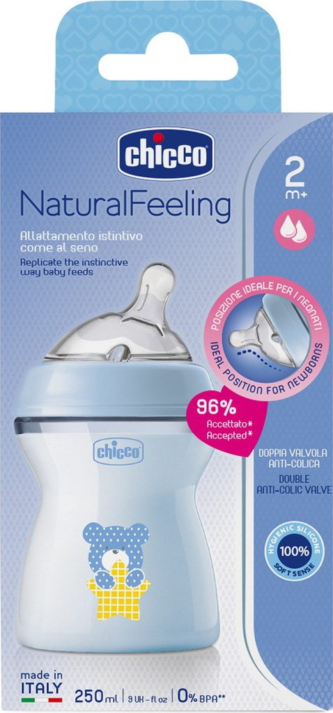 CHICCO Láhev kojenecká Natural Feeling 250ml, 2m+, Boy