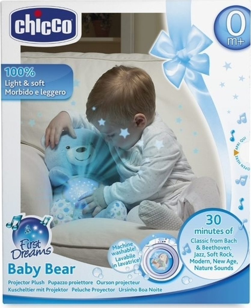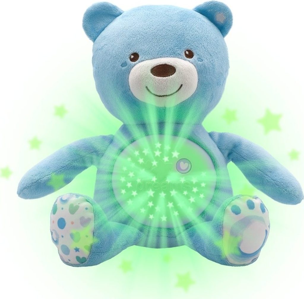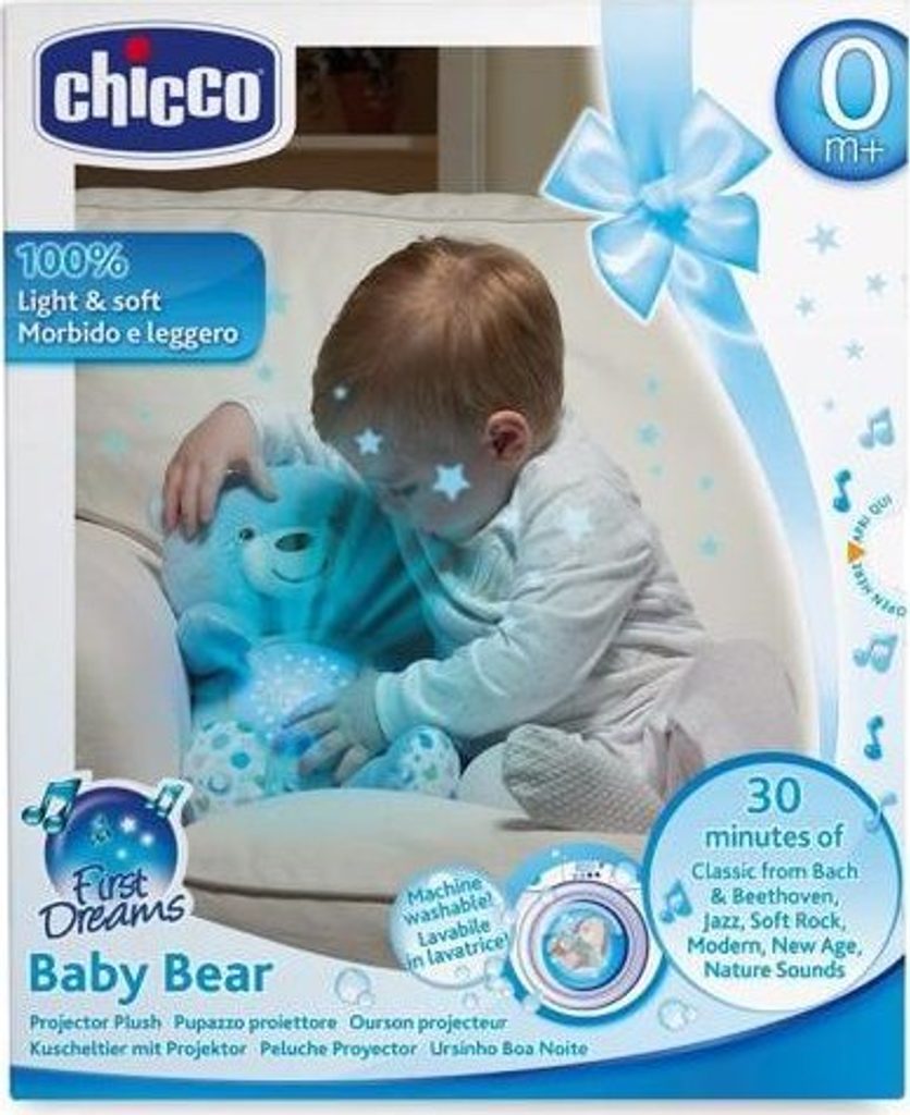 Měkká, jemná a na dotek příjemná plyšová hračka s mechanismem ukrytým v bříšku, díky kterému čas, který dítě stráví s plyšáčkem, přechází za doprovodu příjemné hudby a světelných efektů. Světelné efekty jsou vyzařovány medvídkovým břichem: intenzivní, hvězdná záře, jemná záře nebo jemné světlo, perfektní jako noční lampa. Zvuky, které batole nepřetržitě poslouchá po dobu 30 minut, jsou klasická hudba (Bach a Beethoven), moderní hudba, soft rock, jazz a zvuky přírody.