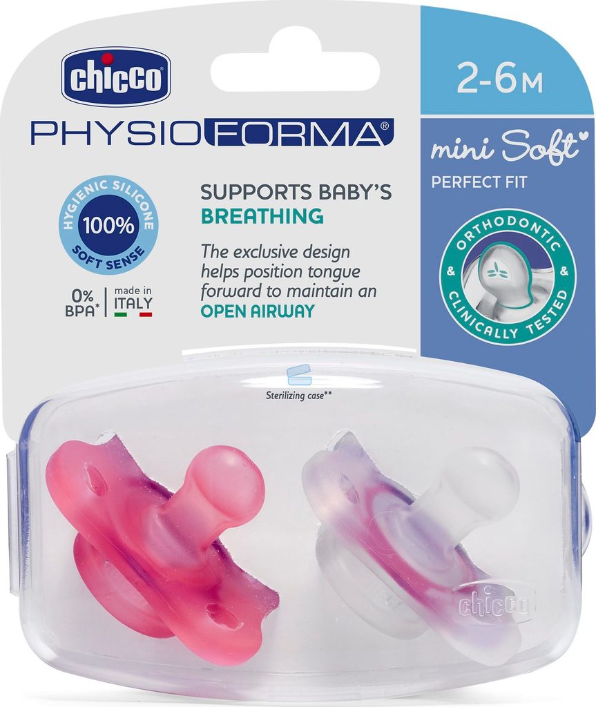 Ergonomický tvar dudlíku prokazatelně podporuje správné fyziologické dýchání novorozenců. Napomáhá poloze jazyka směrem na patro, tedy směrem dopředu a nahoru, a tak učí děťátko dýchat správně nosem už od narození. Kromě toho tento anatomický dudlík podporuje správný vývoj čelisti. Nesprávné dýchání ústy, od kterého ergonomický tvar dudlíků Chicco Physioforma děti odnaučí, totiž zvyšuje riziko SIDS, a také přispívá k nesprávnému vývoji úst a čelisti.