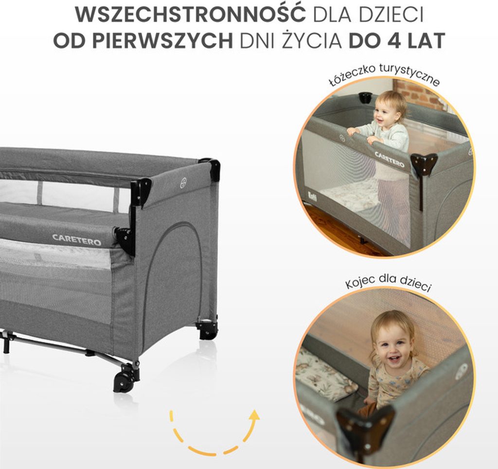 Dětská cestovní postýlka CARETERO ESTI se stahovací bočnicí graphíte