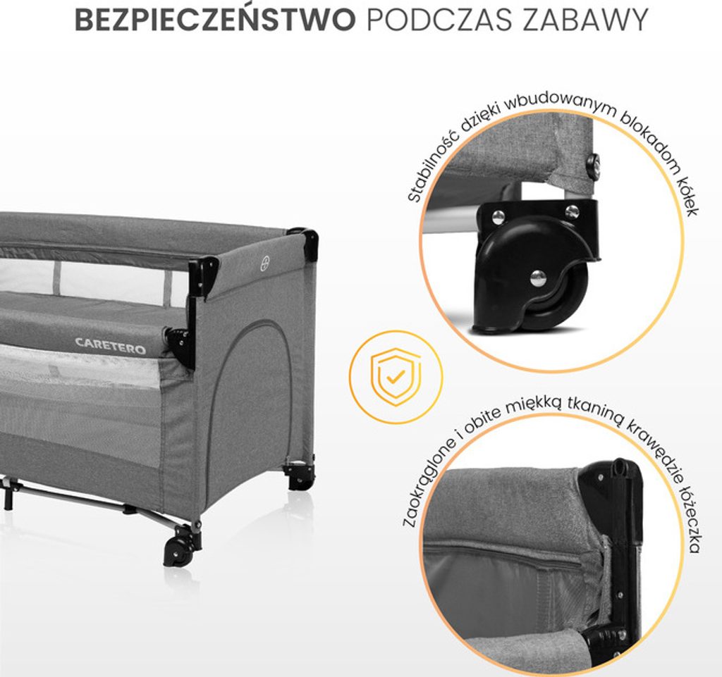 Dětská cestovní postýlka CARETERO ESTI se stahovací bočnicí grey