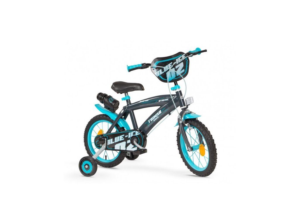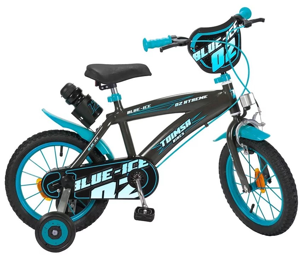 Originální dětské kolo od španělského výrobce Toimsa Blue Ice s velikostí ráfků 14 palců je určeno pro děti ve věku od 3,5 do 5 let s výškou do 100 cm. Kolo je opatřeno demontovatelnými balančními kolečky, dítě se tedy bude cítit hned od první jízdy bezpečně a stabilně. Kolo je vybaveno 2 druhy brzd. Brždění probíhá buď zadní bubnovou brzdou nebo lze použít přední pákovou brzdu. Obě brzdy se ovládají pomocí páček umístěných na řídítkách. Proti nechtěnému namotání nohavice nebo tkaničky do řetězu má kolo kryt s barevným potiskem, který zakrývá celý řetěz. Sedadlo i řídítka jsou výškově nastavitelné. V zadní části je připevněný nosič s lahví na pití.