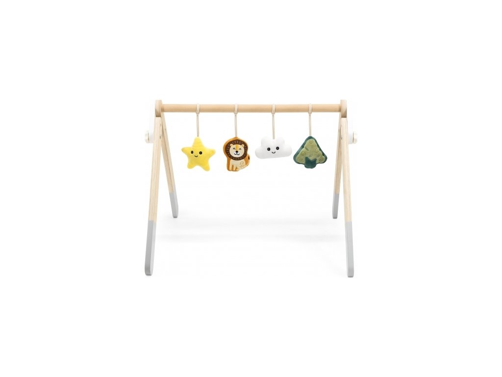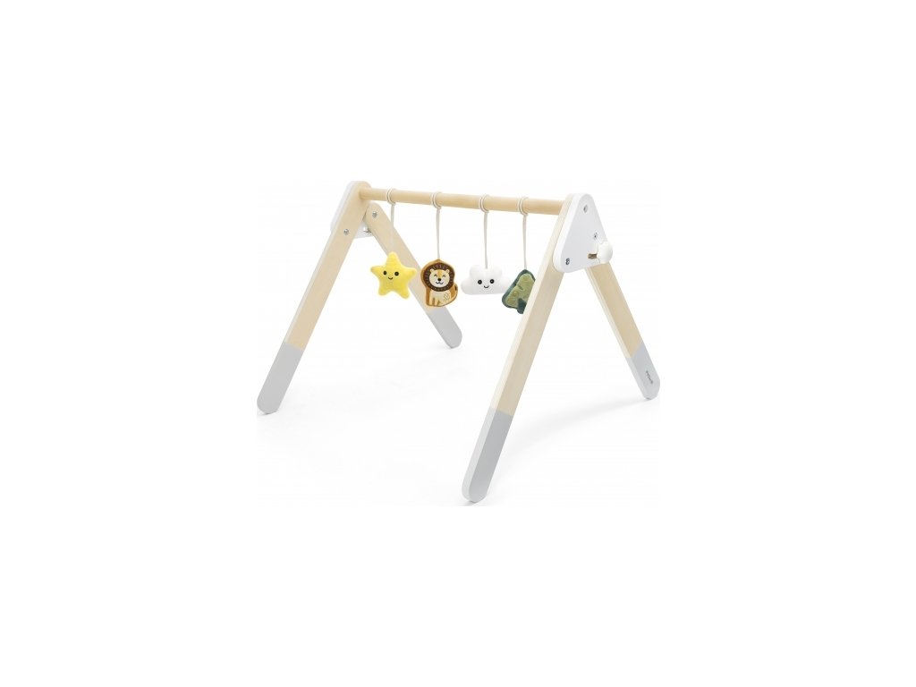 Stojan - Viga PolarB Baby Play Gym doporučený pro děti od prvního měsíce života. Je ideální pro první hry vašeho dítěte. Díky přiloženým interaktivním přívěskům stojan fenomenálně podporuje hru, stimuluje smysly a svaly od prvních dnů života. Charakteristika: - pro děti od prvního měsíce života - natřeno barvami vhodnými pro děti - čelenku lze položit na koberec, podložku, podlahu nebo do postele - přívěsky vydávají zvuky: chrastí, šustí, vrže Hračka rozvíjí: - psychomotorika, - koordinace ruka-oko - logické myšlení - motorika - zvědavost, Váha: 1,6 kg