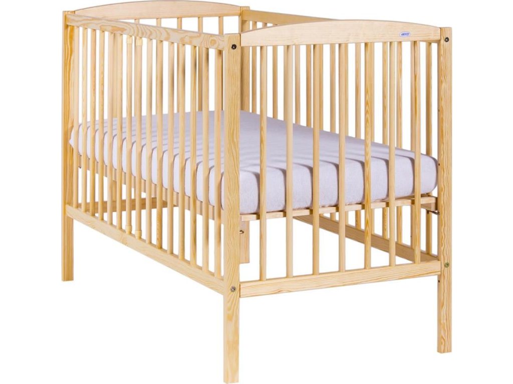 Dětská postýlka Drewex Clasico z masivního borovicového dřeva, ideální pro miminka. Dřevěná postýlka má regulovatelný rošt, který lze nastavit do tří poloh.