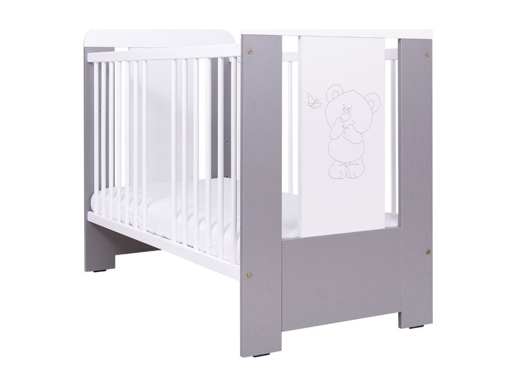 Dětská postýlka se šuplíkem Drewex Malý medvídek a motýlek šedá