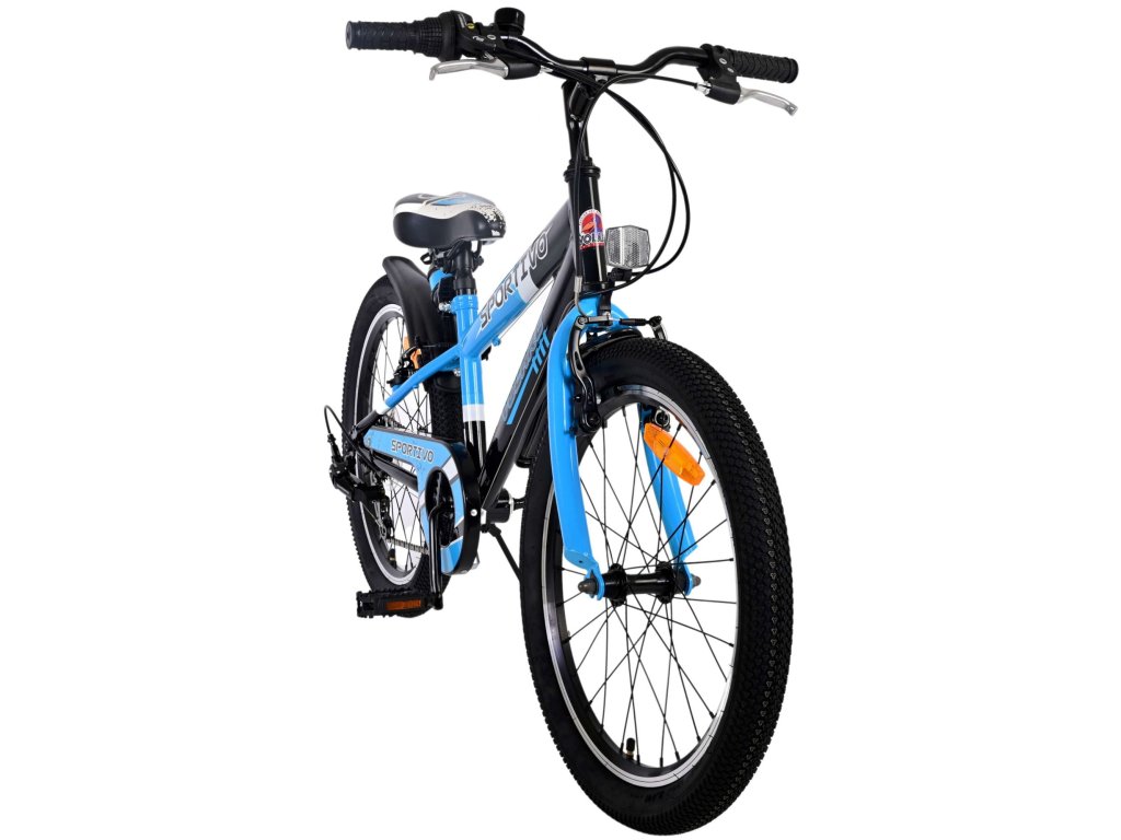 Originální dětské kolo od holandského výrobce Volare Sportivo Blue se širokými pneumatikami a velikostí ráfků 20 palců je určeno pro děti ve věku od 5 do 9 let s výškou od 120 do 155 cm. Kolo je zaměřeno na nejmladší a díky snadné obsluze a barevnému modernímu designu je každý okamžik strávený na kole skvělým zážitkem. Kolo je vybaveno přední i zadní čelisťovou brzdou typu V-Brake. Sedadlo i řídítka jsou výškově nastavitelné. Za sedadlem je umístěný nosič s lahví na pití.