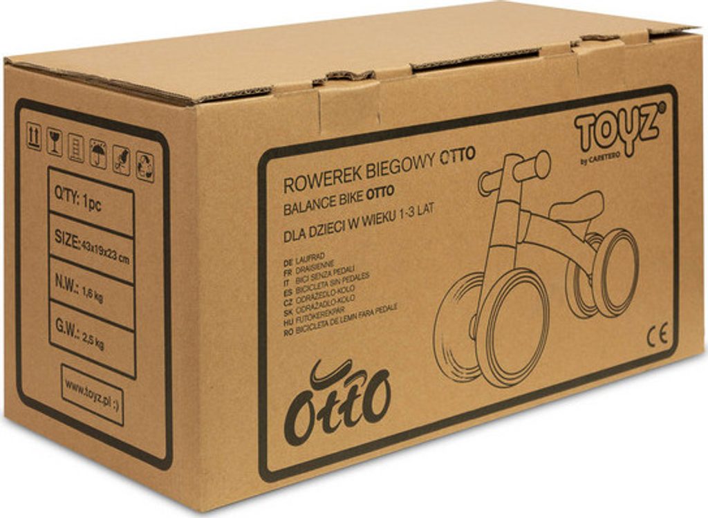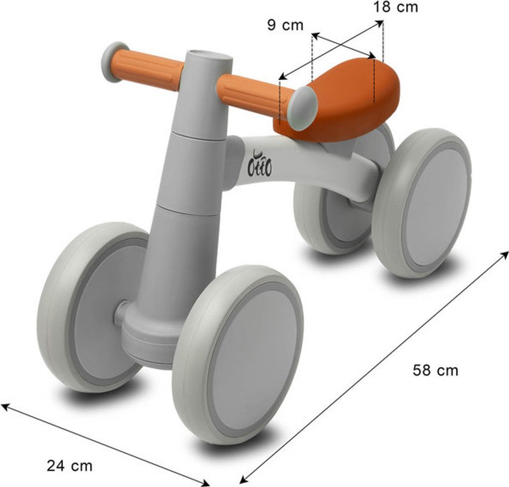 OTTO je balanční kolo pro nejmenší, se kterým bude učení držení rovnováhy skvělou zábavou na procházkách s rodiči. Jeho kovový rám zajišťuje pevnost konstrukce a kola z pružné EVA pěny zaručují jízdní komfort. OTTO se velmi snadno sestavuje a svým neobvyklým vzhledem a zajímavým barevným provedením zaujme každého rodiče.