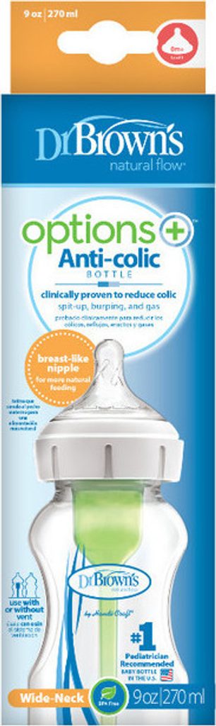 Nejnovější láhve Dr Brown's Options + dávají rodičům možnost vybrat si, jak chtějí své dítě krmit. Patentovaný ventilační systém vám umožňuje krmit vaše dítě lahvičkou Dr. Browna s ventilačním systémem nebo bez něj. Láhev má nový tvar savičky, připomínající matčin prs.