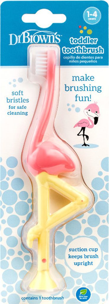 Zubní kartáček Dr. Browna je ideální pro první mléčné zuby, určený pro jemné čištění. Vyrobeno z měkkých štětin, které zajišťují bezpečnou ústní hygienu. Má přísavku, která umožňuje jeho uložení ve vzpřímené poloze. Ideálně se hodí pro malá ústa dítěte a pomáhá rozvíjet dovednosti potřebné k samostatnému čištění zubů. Tvar kartáčku umožňuje jeho snadné držení malými ručičkami. Barevný vzor navíc zajistí skvělou zábavu při čištění. Určeno pro děti od 1-4 let. Zubaři doporučují, abyste z hygienických a bezpečnostních důvodů vyměňovali zubní kartáček každé tři měsíce.