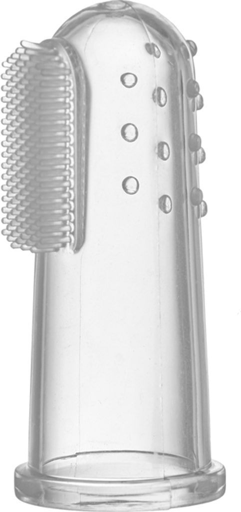 Silikonový kartáč Dr. Brown jemně čistí, masíruje dásně a první zoubky miminka. Je měkký, oboustranný, vyrobený ze 100% silikonu. Lze použít s dětskou zubní pastou nebo bez ní. Nasazuje se na prst. Má ochranný obal.