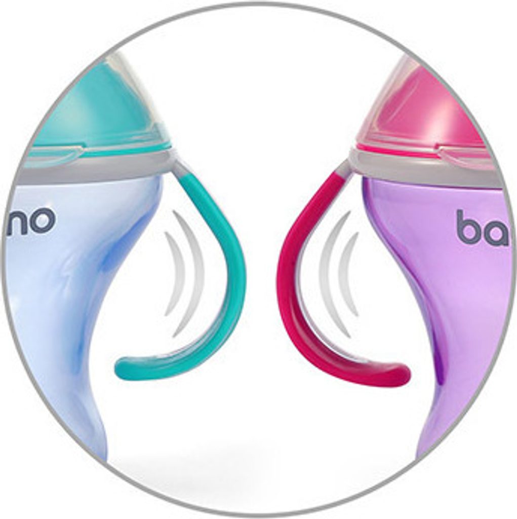 Široké ergonomické rukojeti umožňují pohodlné držení hrnečku v malých ručičkách a speciálně navržený měkký náustek nedráždí citlivé dásně dítěte.