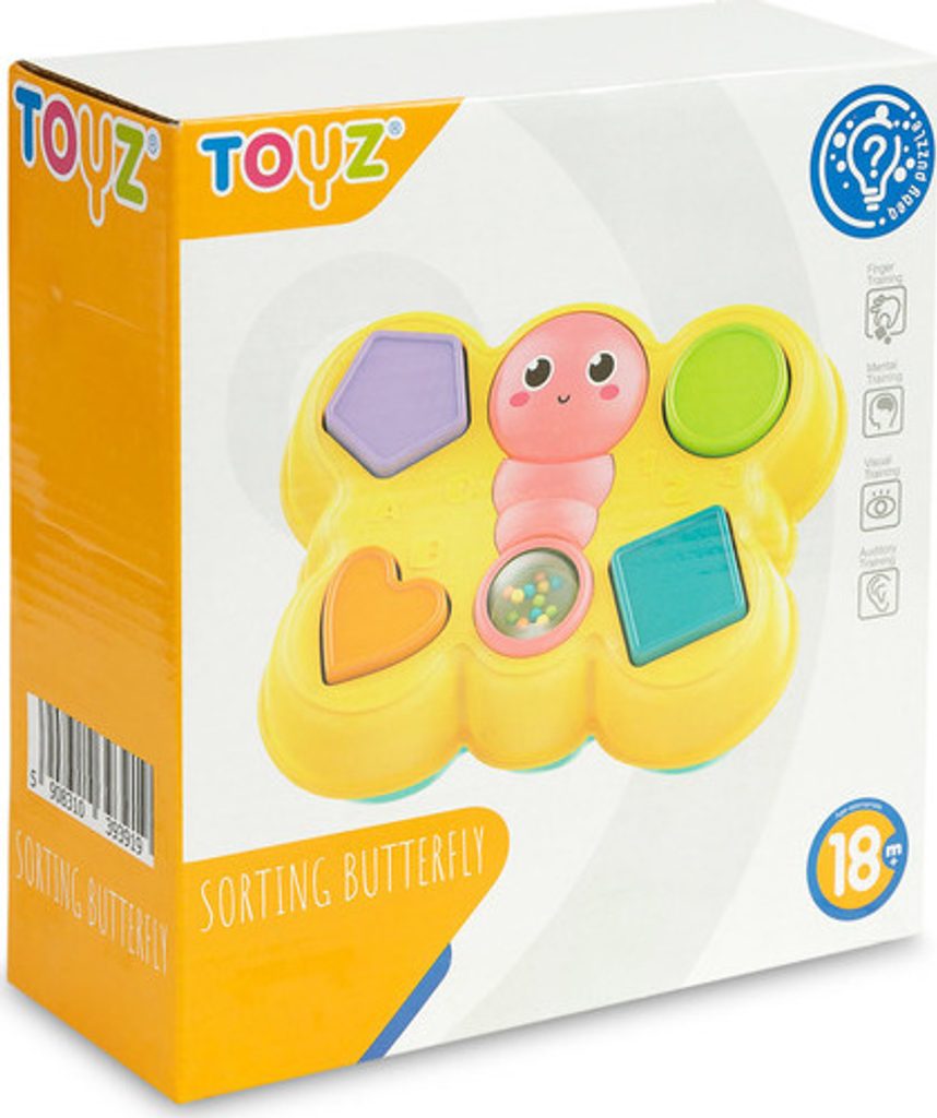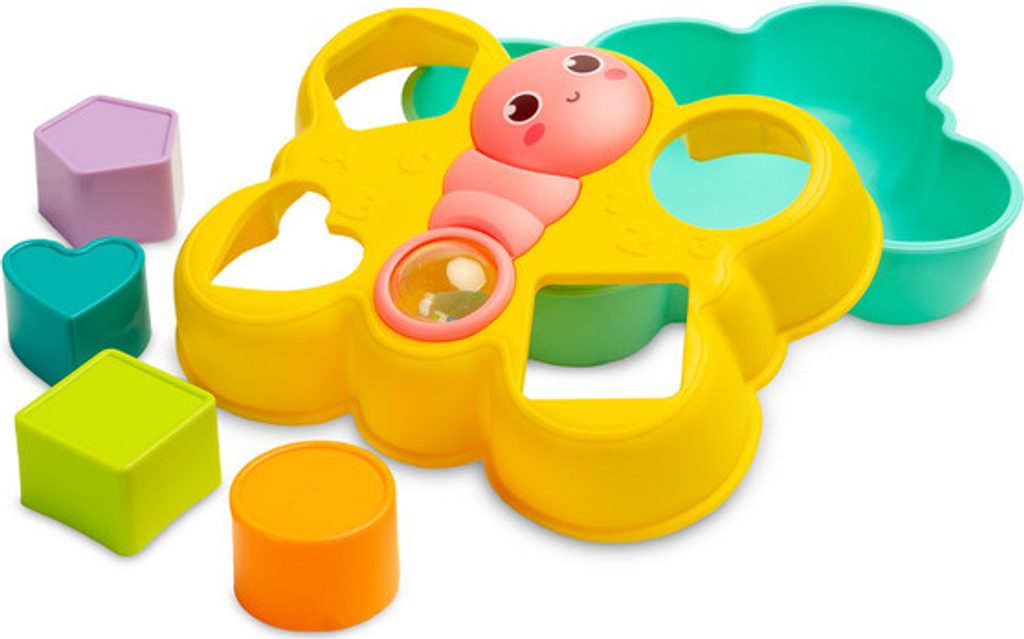 Třídicí motýlek je skvělá logická hračka pro nejmenší. Dodává se se 4 barevnými bloky, které odpovídají otvorům ve víku. Usměvavou tvář motýla lze otočit a ocas má průhlednou kouli plnou barevných, chrastících kuliček. Hračka je vhodná pro děti starší 18 měsíců.