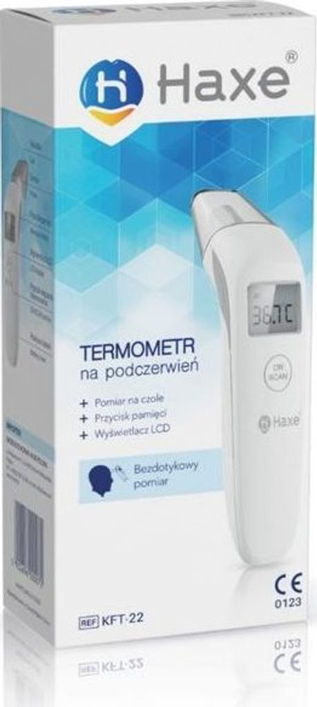 Infračervený teploměr KFT-22 je bezkontaktní zařízení pro měření tělesné teploty a teploty předmětů. Teploměr zajišťuje hygienické měření teploty ze vzdálenosti 2,5 cm. Měření trvá pouhé 2 sekundy, což výrazně usnadňuje kontrolu teploty pacienta. Velký podsvícený displej usnadňuje odečítání teploty i lidem se špatným zrakem. Při teplotě 38 °C a více zazní také akustický alarm horečky.