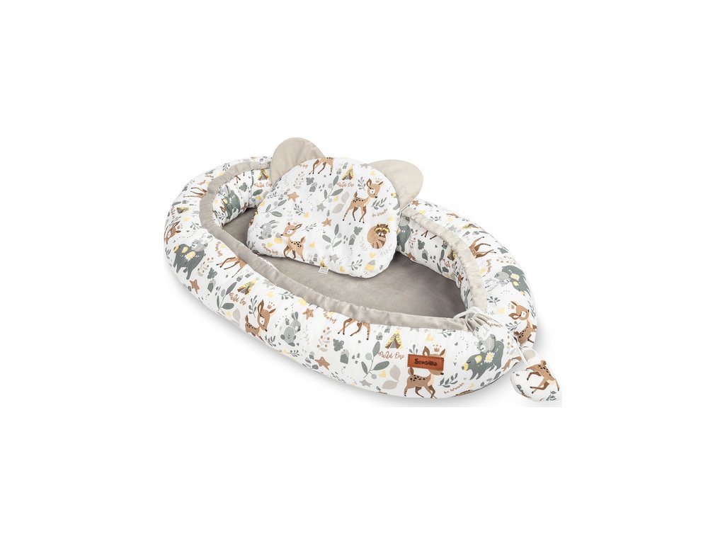 Velvet kokon od Sensillo byl vytvořen pro děti od narození do přibližně 6 měsíců věku. Dokonale zabalí miminko a omezí jeho prostor, díky čemuž se miminko cítí bezpečně jako v bříšku své maminky. Vysoké stěny zabraňují převalování dítěte. Základem je odnímatelná matrace, která je z jedné strany potažena sametovou látkou a z druhé strany jemnou 100% bavlnou. Váleček je plněný antialergickou silikonovou výplní.Uplatní se v mnoha situacích: v posteli rodičů, na pohovce, v postýlce i na výletech.