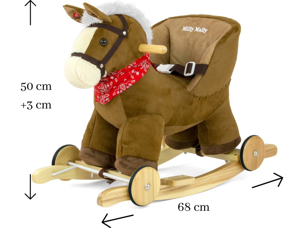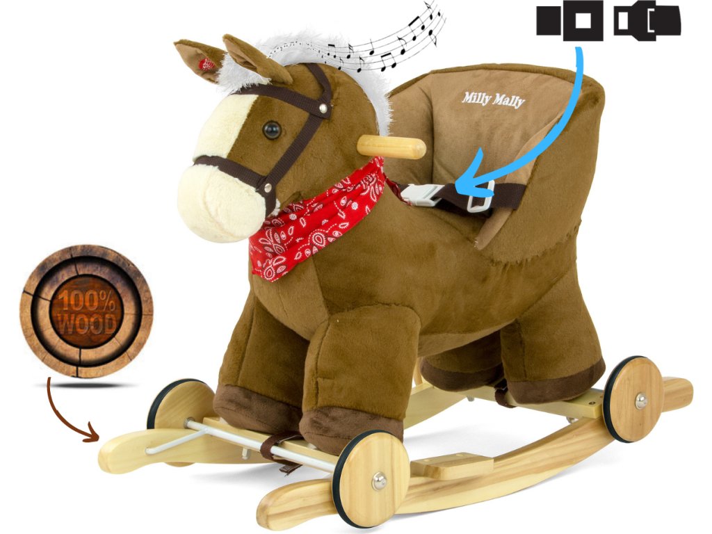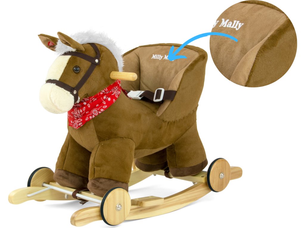 Houpací koník s melodií a kolečky Milly Mally Polly hnědý