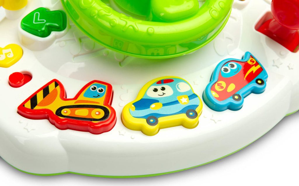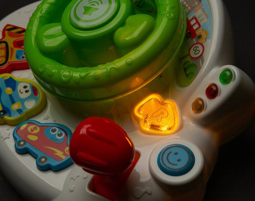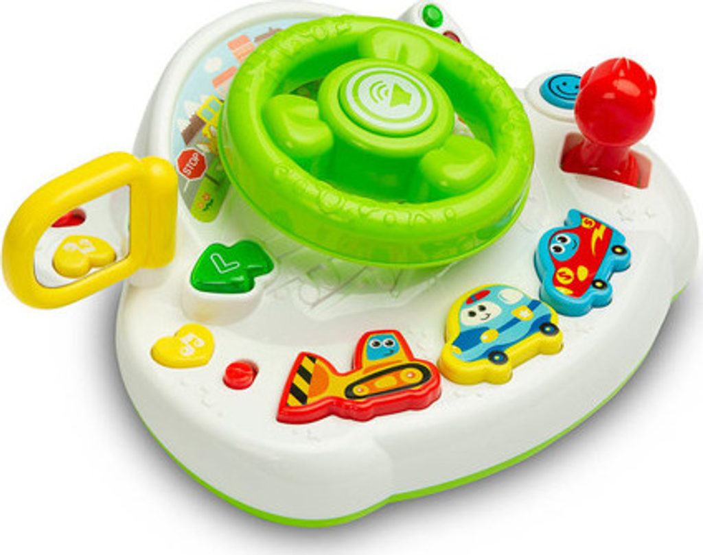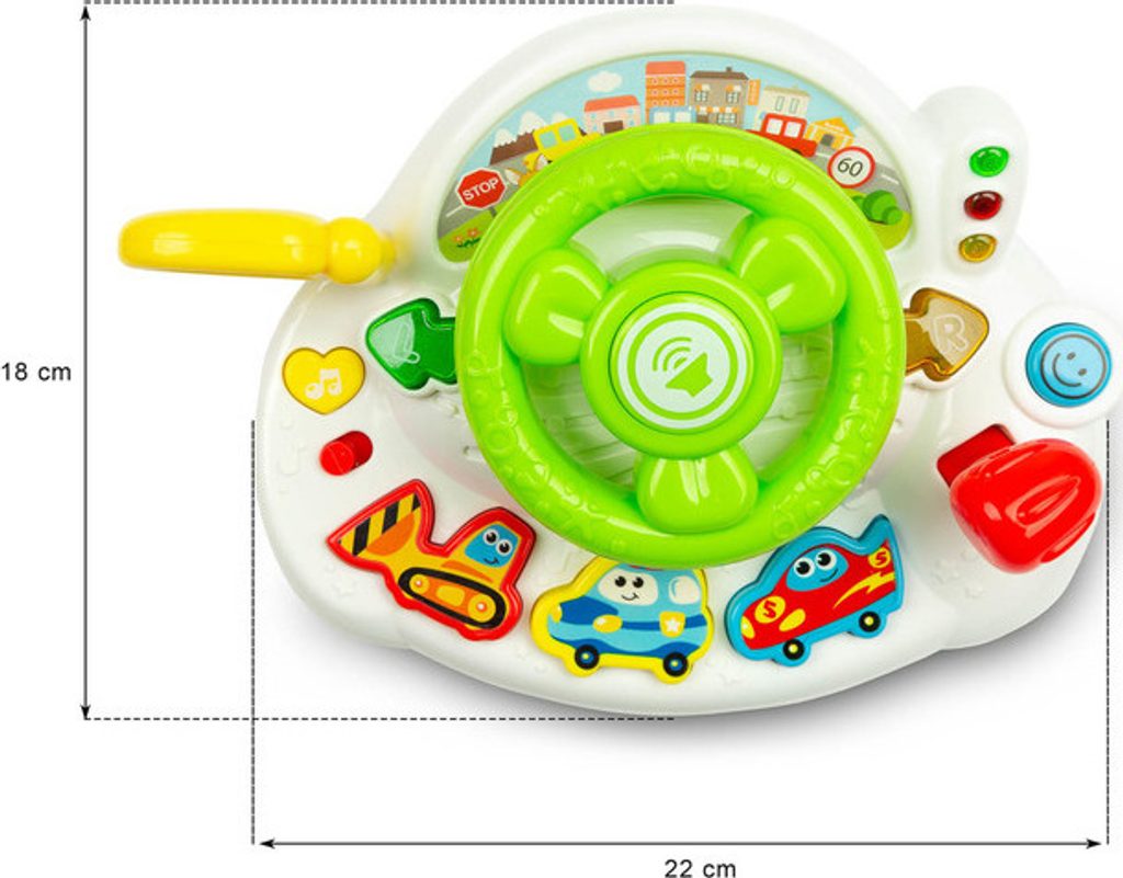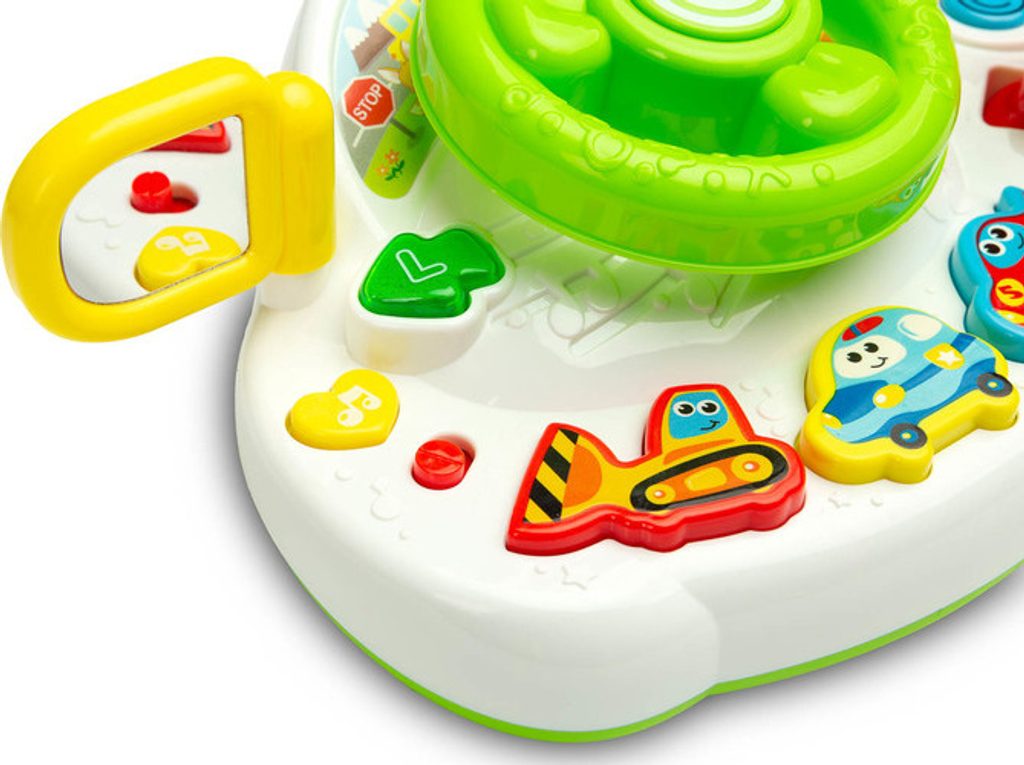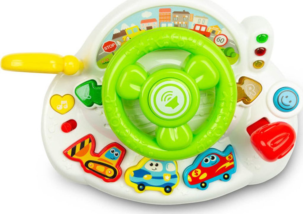 Vzdělávací volant od TOYZ je barevná hračka, která zpříjemní chvíle vašeho batolete. Panel volantu obsahuje tlačítka a kontrolky, které ladí s reproduktorem, který vydává příjemné melodie a zvuky auta.