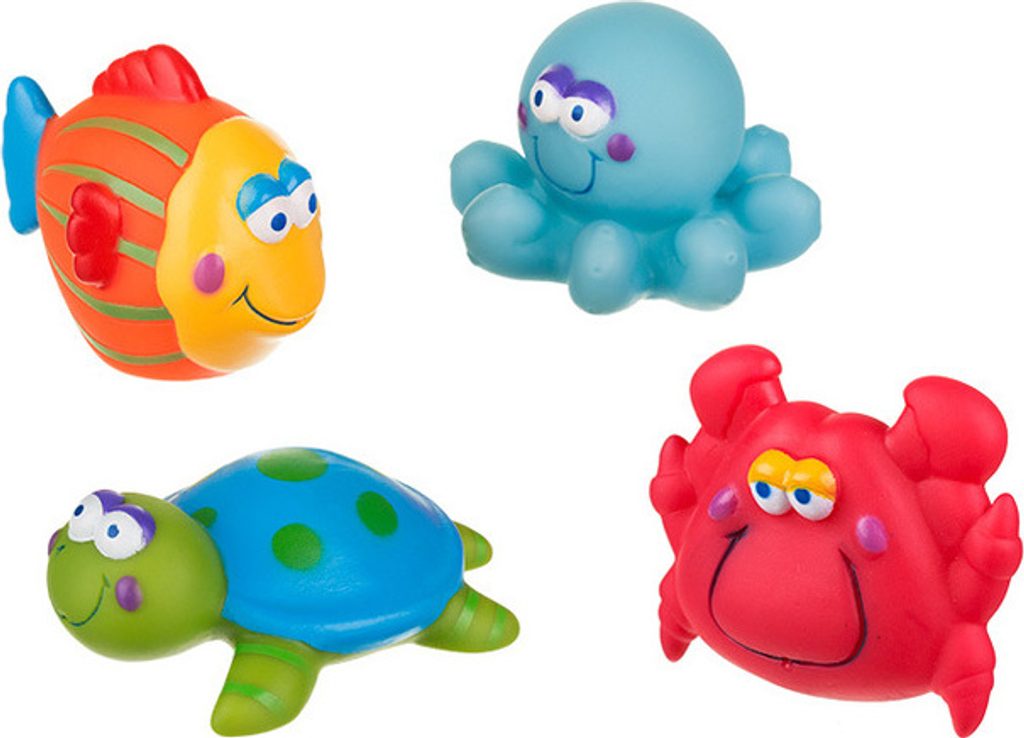Sada 4 roztomilých barevných hraček do vany. Ideální pro zábavu při koupání. Jedinečný design. Krásné barvy přitahují pozornost těch nejmenších. Prostřednictvím hry dítě poznává svět kolem sebe.