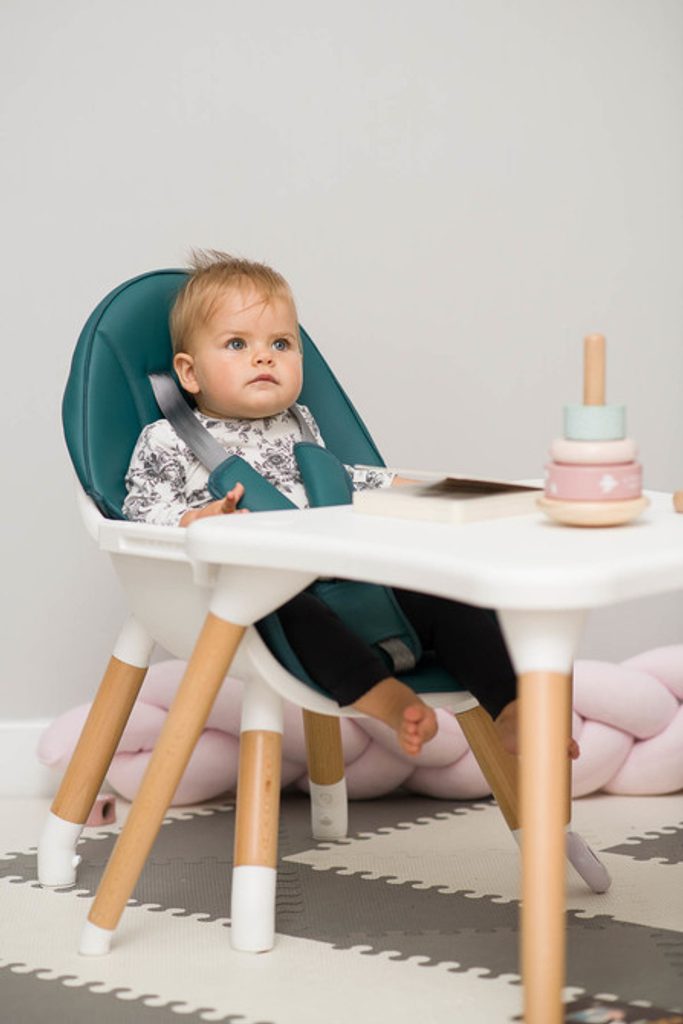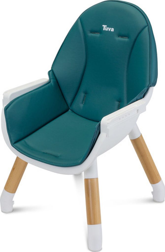 Tuva je vysoká jídelní židlička, která kombinuje jedinečný skandinávský styl s funkčností. Díky svému jednoduchému designu jí lze rychle přizpůsobit potřebám dítěte. Stačí několik pohybů a židlička (bez sejmutí nohou) se z vysoké židle promění ve stylovou židli + stůl. Jídelní židlička Tuva je vyrobena z vysoce kvalitních materiálů, díky nimž je odolná a bezpečná. Má pětibodové pásy a dodatečnou ochranu při tácku, která zabraňuje sklouznutí dítěte. Křeslo ve snaze o velký komfort dítěte a rodičů, má dvojitý nastavitelný podnos se dvěma místy na kelímek. Sedadlo je vyloženo měkkým a snadno čistitelným čalouněním. Na druhé straně jsou dřevěné nohy zakončeny protiskluzovými podložkami, které plně chrání podlahu před poškrábáním.