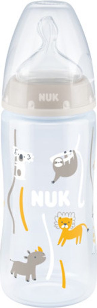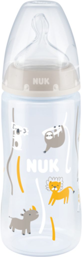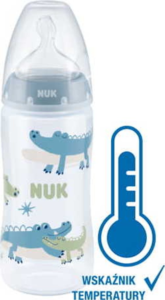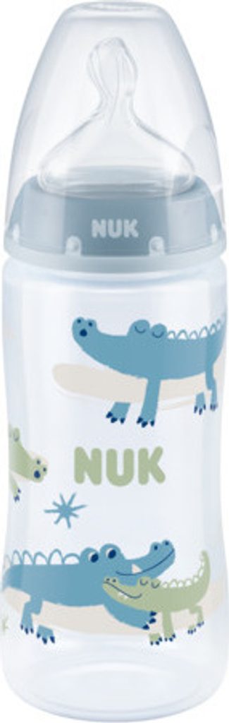 Aby se zajistilo, že jídlo vašeho dítěte nebude příliš horké, jsou NUK First Choice + Bottles vybaveny NUK Temperature Gauge. Ukazatel vypadá jako teploměr a je umístěn mezi dílky. Indikátor mění barvu se změnou teploty obsahu lahvičky. Pokud je jídlo příliš horké, indikátor se změní z modré na bílou.