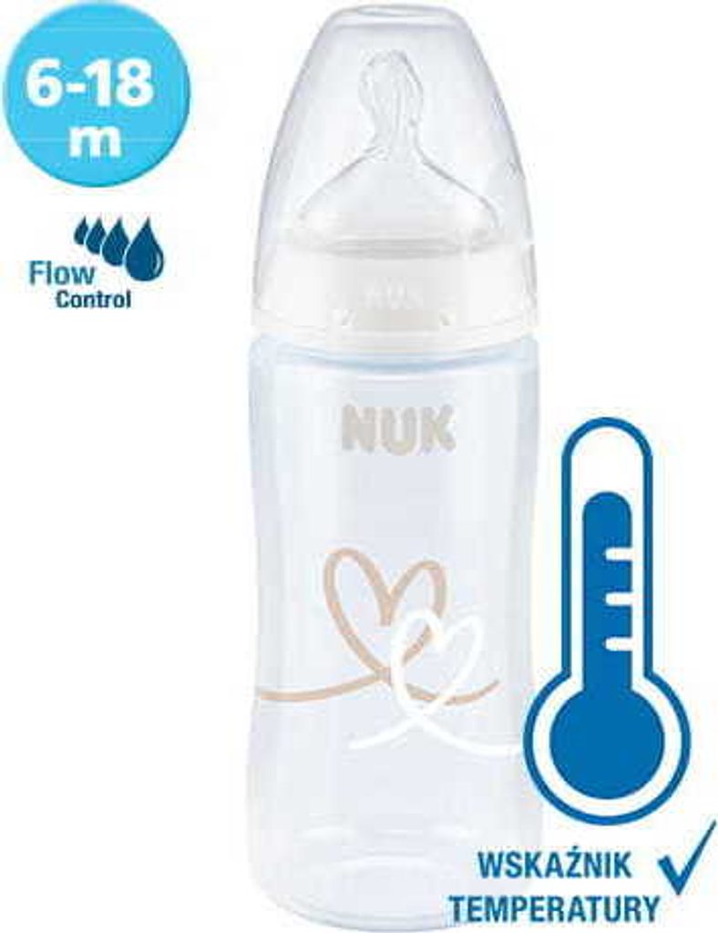 NUK First Choice + láhev s indikátorem teploty a savičkou s řízením průtoku:
