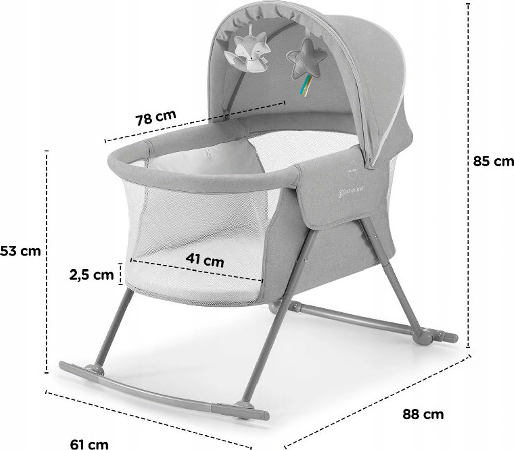Praktická postýlka 3v1, kterou využijete jako kolébku, cestovní postýlku i domácí postýlku. Nastavitelná stříška se zabudovanou moskytiérou zajistí vašemu dítěti klidný a bezpečný spánek za všech podmínek.