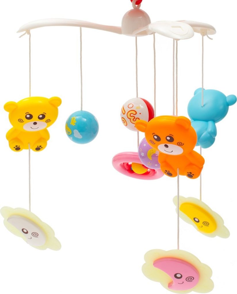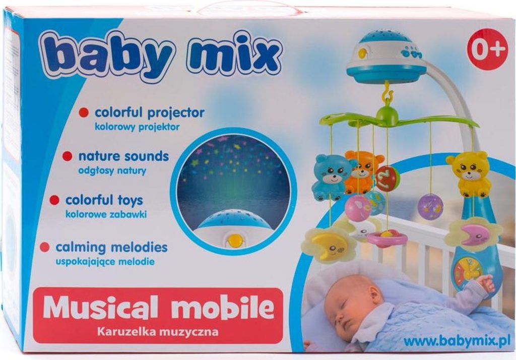 Pořiďte svým nejmenším kolotoč nad postýlku se světelným projektorem s hvězdičkami, které mění barvu a plní také funkci noční lampičky. Kolotoč rozvíjí zrakově pohybovou koordinaci a uklidňuje před usnutím. Pomocí tlačítek na projektoru lze nastavit melodii, rotaci kolotoče a promítání hvězdiček. Všechny funkce lze spustit i samostatně. Hrací strojek nabízí 3 různé melodie a zvuk přírody. Na boční straně má krásné barevné hodiny, kterých se může miminko dotýkat a točit ručičkami. Hračky lze odmontovat a používat zvlášť. Hračky v balení se můžou lišit dle aktuální nabídky. Baterie nejsou součástí balení. Technické parametry: nastavitelná hlasitost výška hračky - cca 10 cm napájení kolotoče - 3 x AA 1,5 V, napájení ovladače - 2 x AA 1,5 V.
