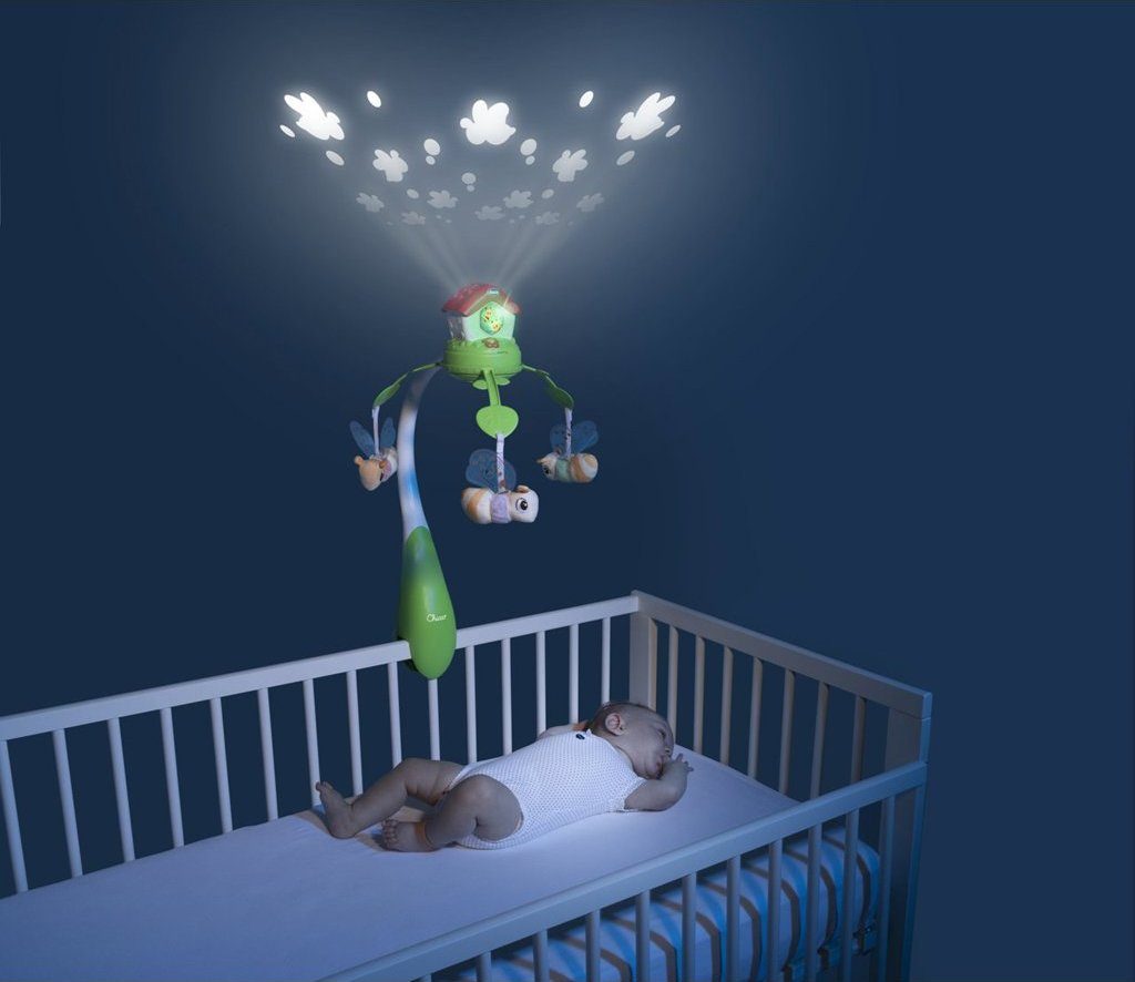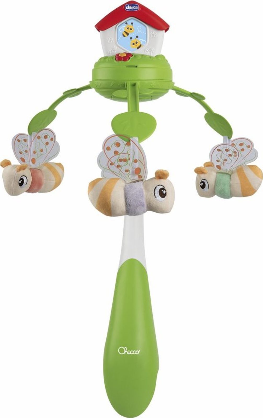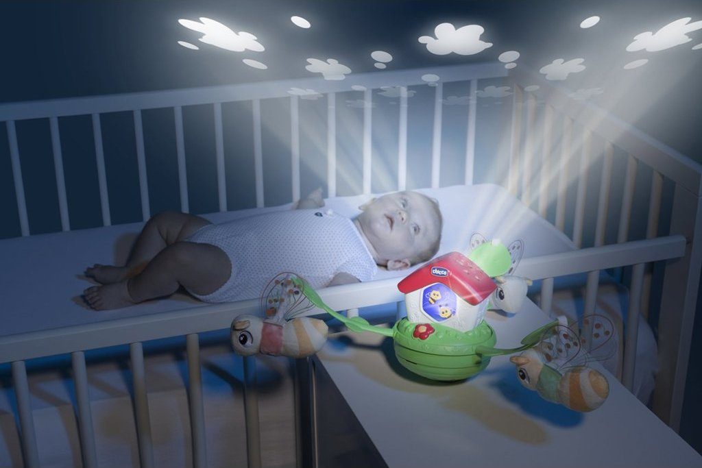 Dětský kolotoč Chicco Bees je kultovní produkt v nové elektronické verzi 3 v 1. Díky funkcím projekce, barevným světýlkům a relaxační hudbě poskytne tento kolotoč vašemu dítěti mnoho výhod. Od 0 do 6 měsíců funguje kolotoč jako stacionární kolotoč s funkcí projekce a otáčením na postýlce miminka. Od 0 do 36 měsíců lze použít jako noční projektor a od 6 do 36 měsíců jako centrum aktivit. Kolotoč zobrazuje na stropě včely, které mění barvy a hrají hudbu. Dítě si užije 30 minut relaxační hudby a melodie lze vypnout, aby se dítěti pomohlo soustředit se na světelné podněty. Kolotoč je kompatibilní s dřevěnými postýlkami a všemi kolébkami Chicco Next2Me.