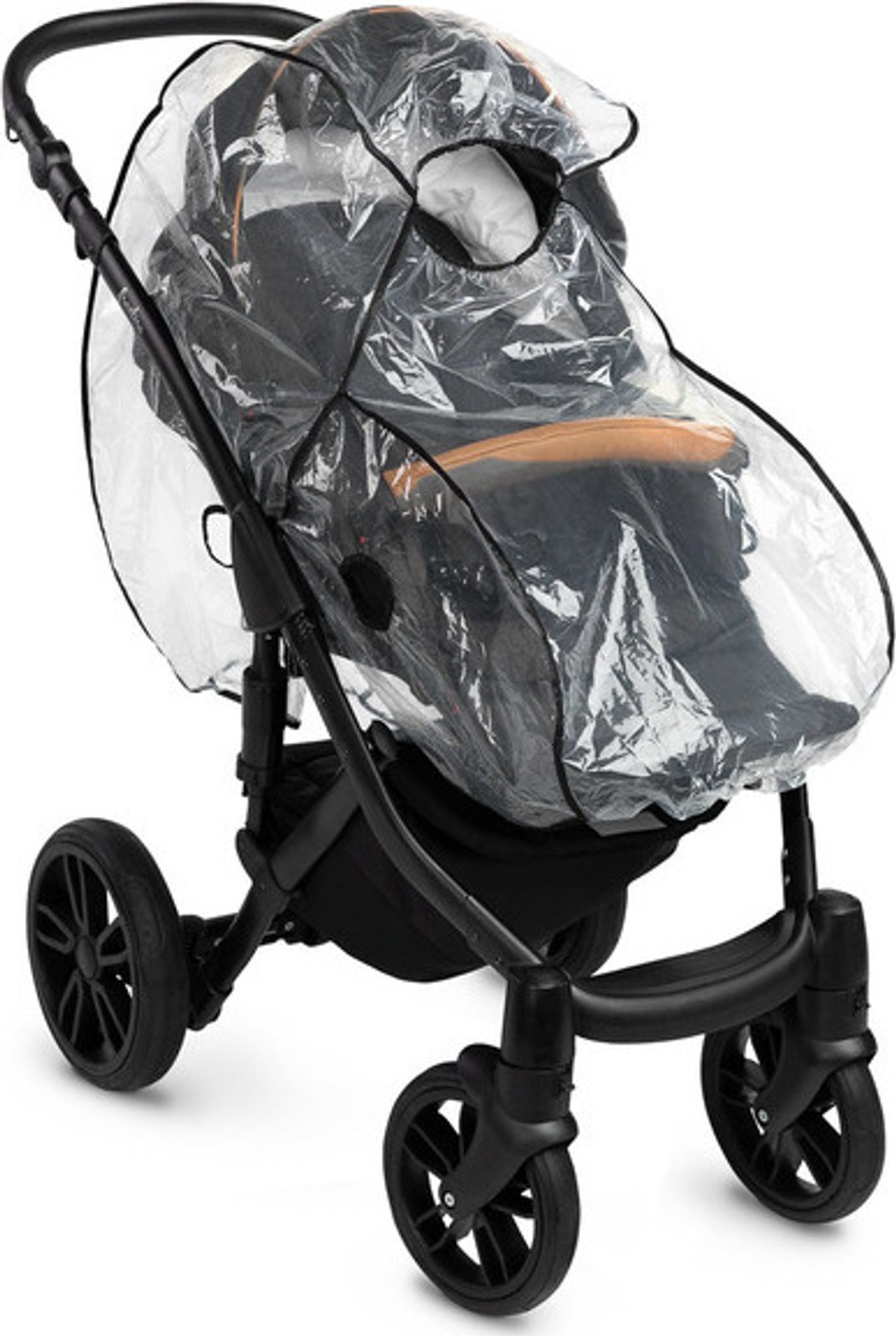 Pláštěnka chrání kočárek i dítě před nepřízní počasí. Vyrobeno ze silné fólie, zcela bezpečné pro dítě, odolné vůči vysokým i nízkým teplotám. Má výřez pro kontakt s miminkem. Fólie byla testována Národním hygienickým ústavem z hlediska kvality materiálů a zpracování. Potah je k dispozici ve třech verzích, aby dokonale seděl na typ kočárku.
