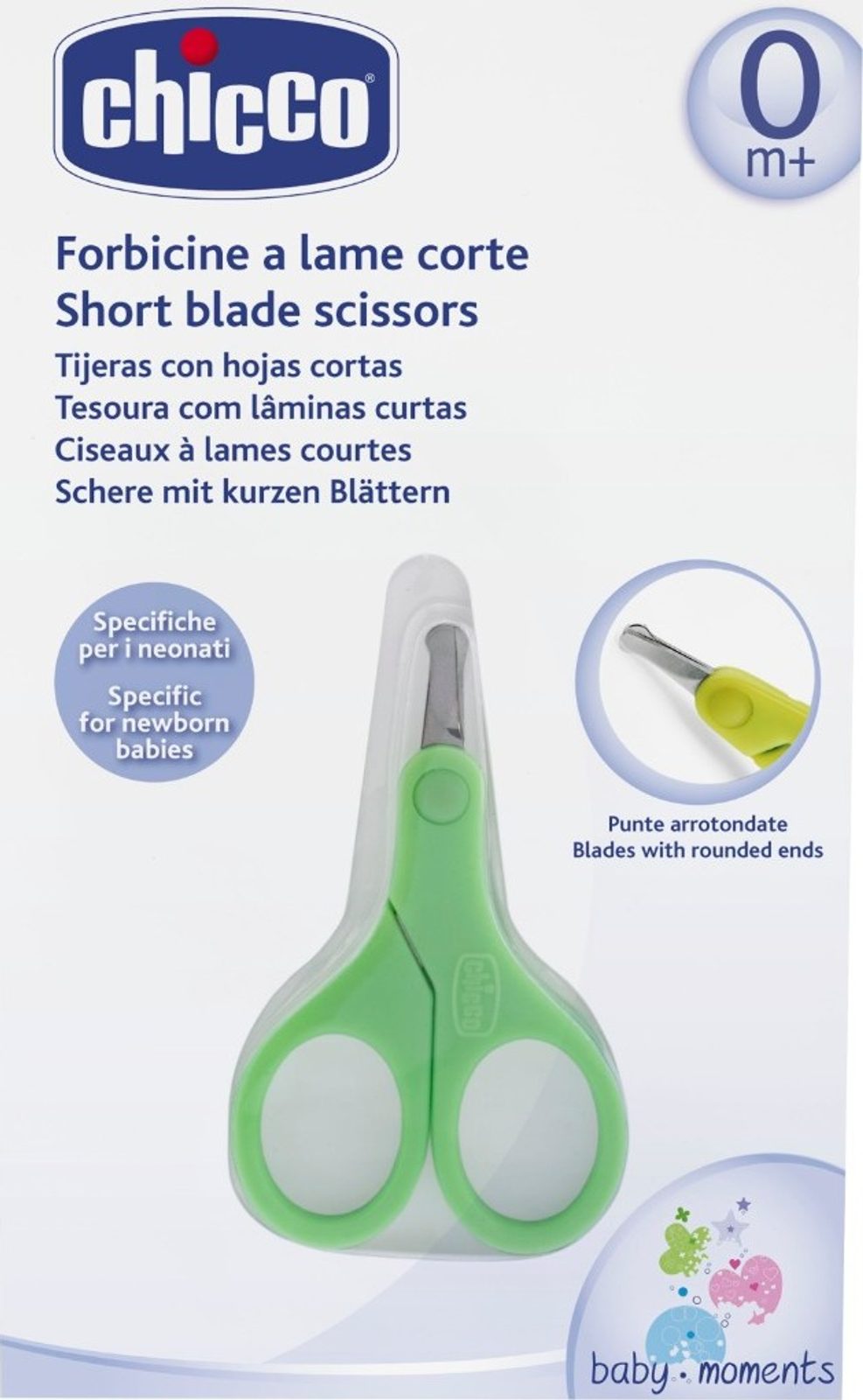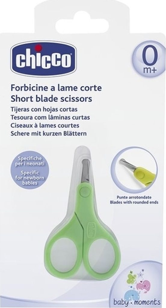 Chicco Krátké nůžky na nehty jsou vyrobeny z nerezové oceli bez obsahu niklu, mají krátké, zakřivené ostří se zaoblenými hroty pro naprostou bezpečnost vašeho dítěte a pro přesné stříhání nehtů. Ideální pro novorozence.