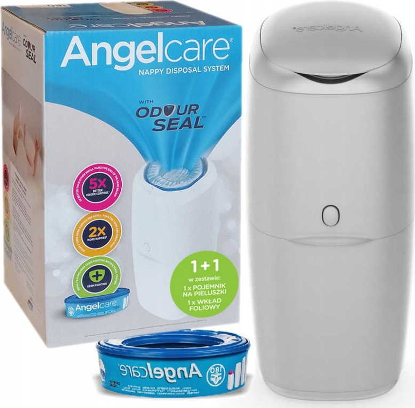 Odpadkový koš na pleny Angelcare poskytuje účinnou izolaci bakterií a nepříjemných pachů. Pro nádobu jsou vyhrazeny speciální vyměnitelné kazety. Spolehlivé oddělení špinavých plen zaručuje speciální bezzápachová vícevrstvá fólie použitá ve vložce. Zásadní je použití antibakteriálního povlaku.
