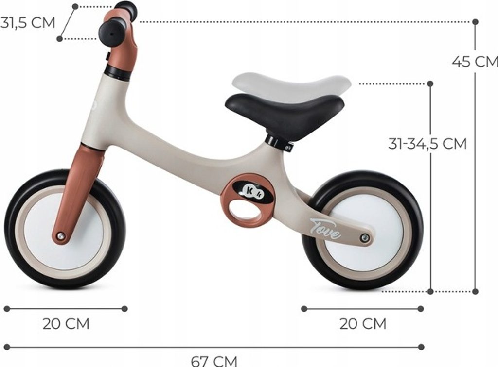 Děti rychle rostou – proto má odrážedlo TOVE nastavitelné sedlo. Díky tomu se bude hodit menším i větším dětem. Sedlo je nastavitelné v rozmezí 31-34,5 cm.