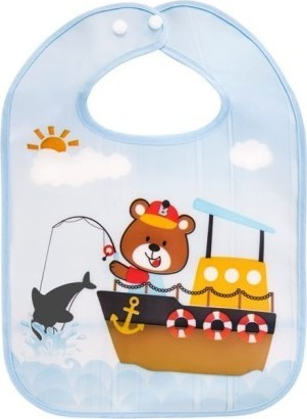 Plastový bryndáček Medvídek Rybář, modrý