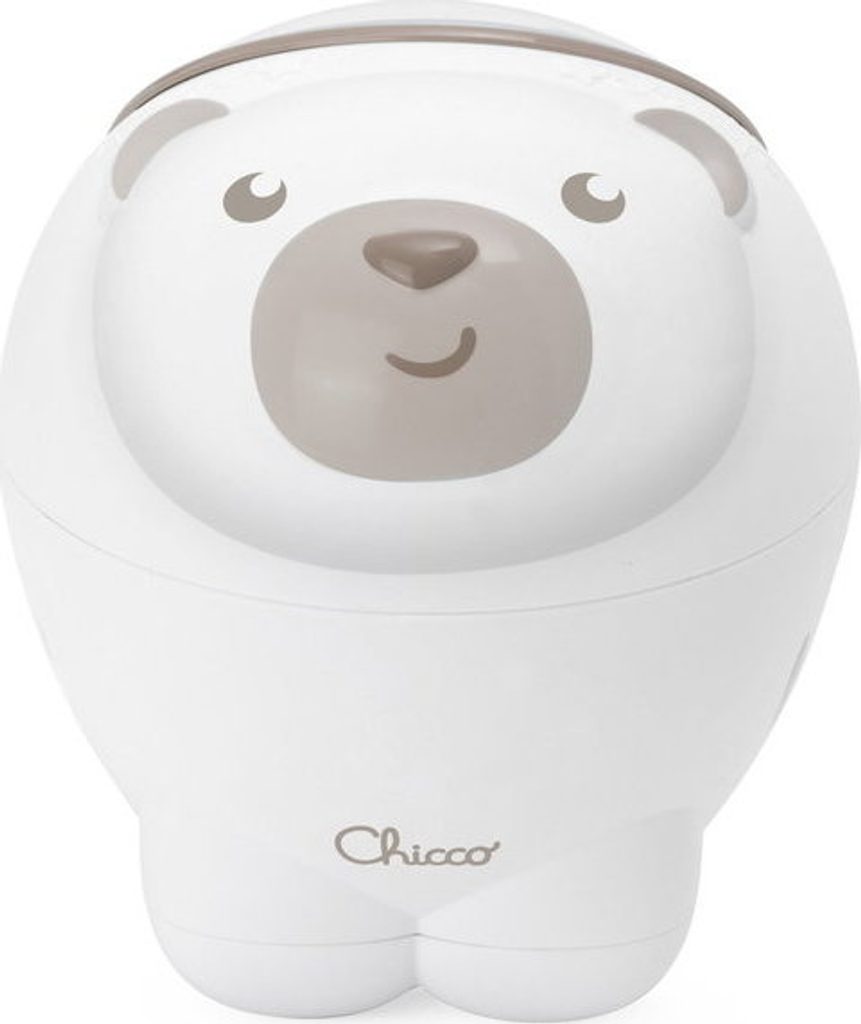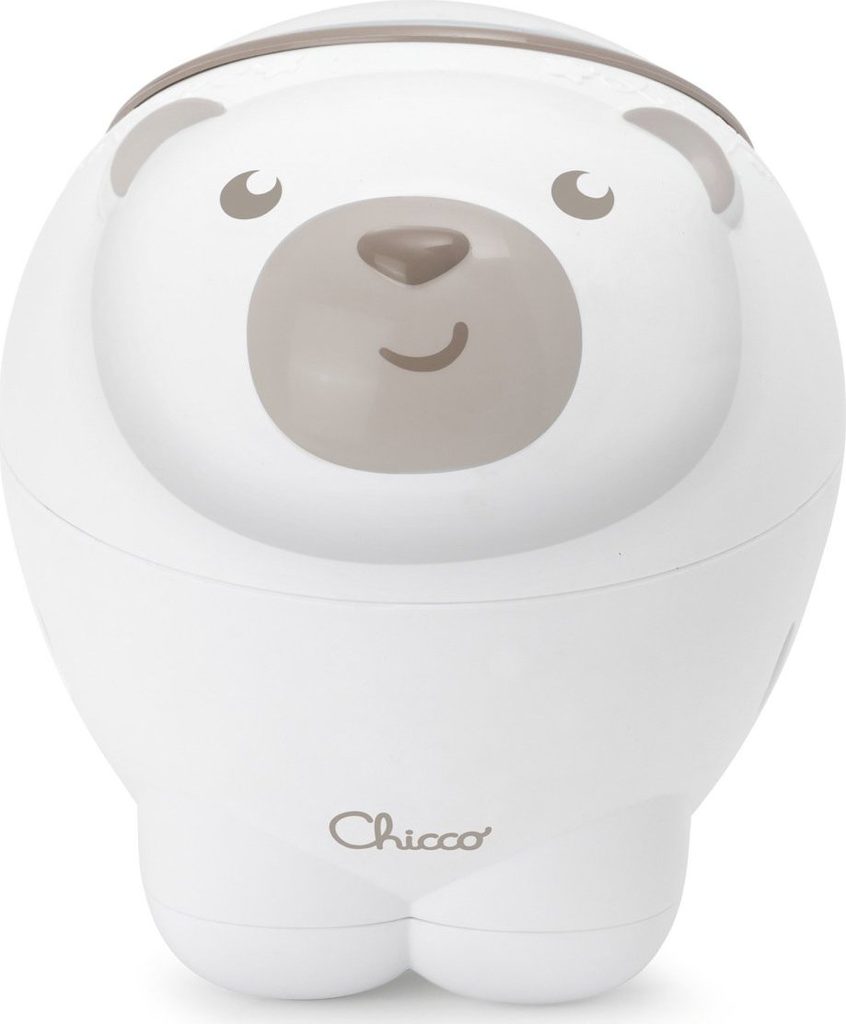 Hračka má 30minutový cyklus přehrávání velkolepé projekce polární záře, zobrazující kouzelné barevné světelné efekty v kombinaci s relaxační klasickou hudbou (Mozart, Bach, Glinka) a zvuky přírody. Měnící se projekce polární záře v kombinaci s uklidňujícími melodiemi vytváří atmosféru napomáhající odpočinku a usínání. Efekty je možné konfigurovat podle potřeby – jedním tlačítkem se volí melodie, druhým se zapínají či vypínají světelné projekce. Hračka má ovládání hlasitosti na 2 úrovních pro přizpůsobení volby preferencím dítěte. Díky speciálnímu montážnímu systému se projektor hodí na všechny postýlky Chicco Next2Me a dřevěné postýlky s rámem do 38 mm. Věková kategorie: 0M+ Hračka je napájena 3 AA 1,5V bateriemi (nejsou součástí balení). Rozměry projektoru: 13x13x14,5 cm.
