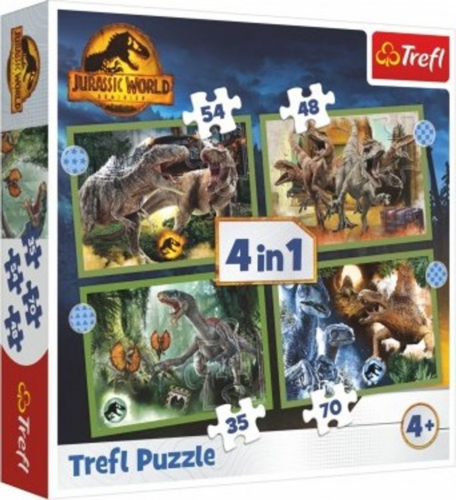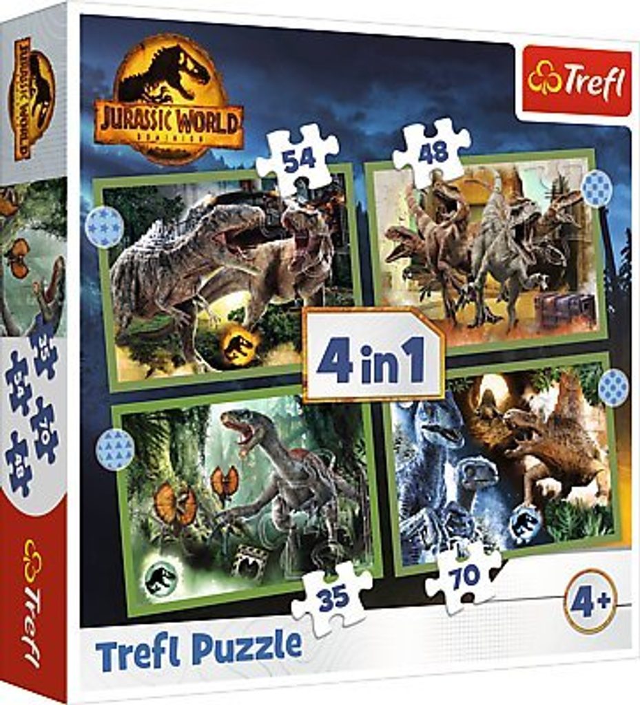 Skládání puzzlí už dlouho patří k oblíbeným dětským aktivitám. A není to činnost, která by dokázala zabavit pouze děti. Tyto puzzle patří mezi klasické puzzle, které zná každý. Potěší ale každého milovníka dinosaurů a Jurského parku! Mezi jejich vlastností i patří to, že jsou 4 puzzle v 1 balení - obsahují 35, 48, 54 a 70 dílků. Jsou tvořeny materiálem, kterým je karton.