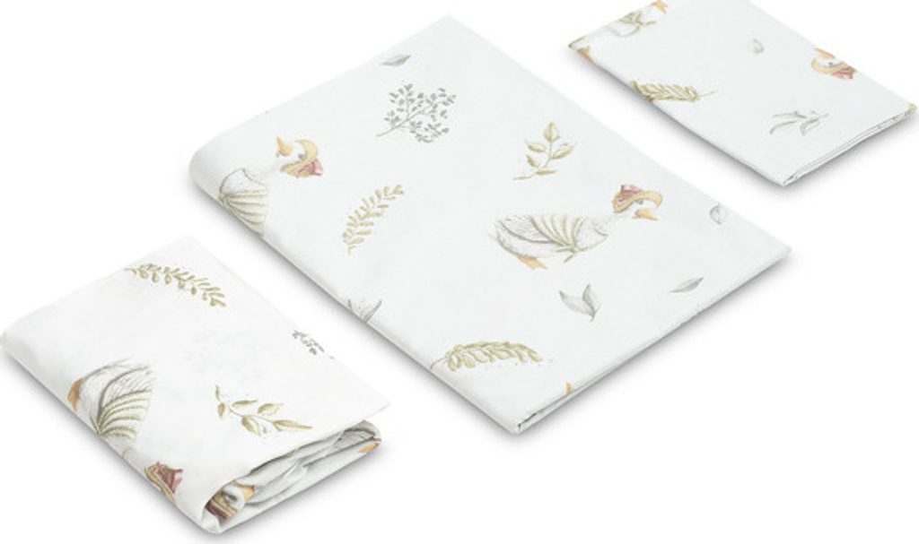 Sada obsahuje povlaky na přikrývky a polštáře a vypasované prostěradlo. Je vyrobena z příjemné na dotek a odolné 100% bavlny. Je určena pro postele 120x60 cm.