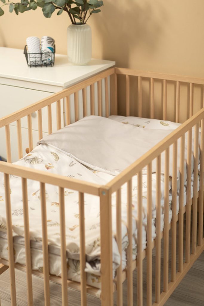 Sada obsahuje: povlak na přikrývku 100 x 135 cm povlak na polštář 40 x 60 cm vypasované prostěradlo 120x60cm Způsob údržby: Perte na max. 40 °C Nepoužívejte bělidlo. Perte v jemném pracím prostředku nebo pracím prostředku na barvy. Nečistěte chemicky. Žehlete při maximální teplotě 150⁰C Složení: 100% bavlna