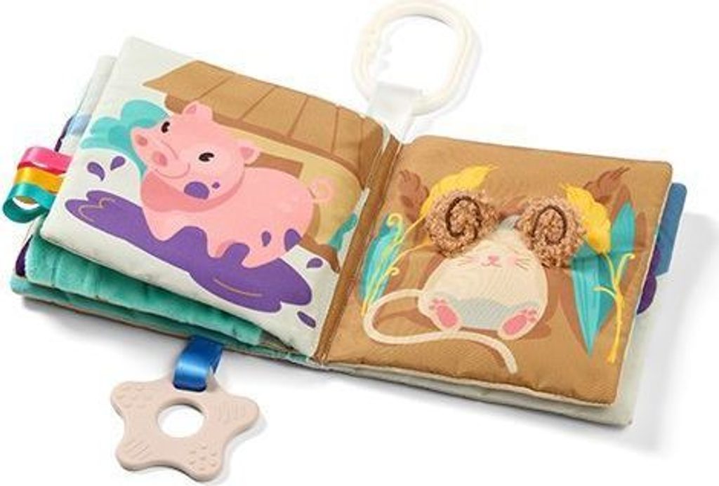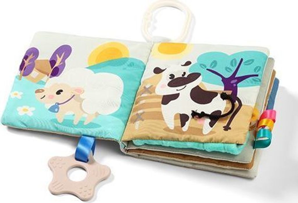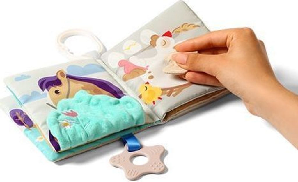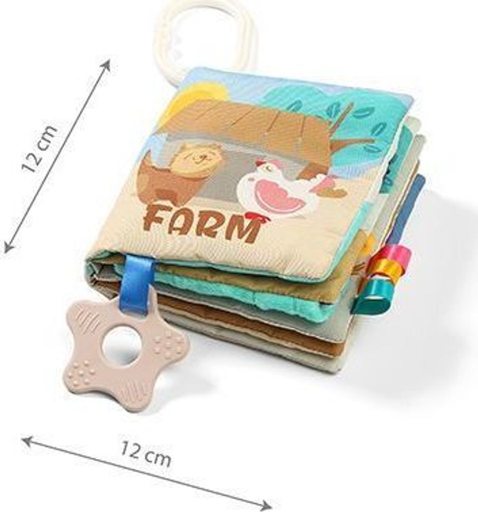 Se smyslovou knížkou "Farma" se vaše batole poznává o zvířatech žijících na venkově. Barevné obrázky, vypouklé prvky a různé druhy látek pomáhají rozvíjet představivost a povzbuzovat ke hře. Naše smyslová kniha je tajemná země plná překvapení. Každý obrázek skrývá něco jiného a povzbuzuje vaše batole, aby objevilo další stránky. Jedná se o hračku, která podporuje zrakovou, sluchovou a motorickou koordinaci vašeho dítěte.